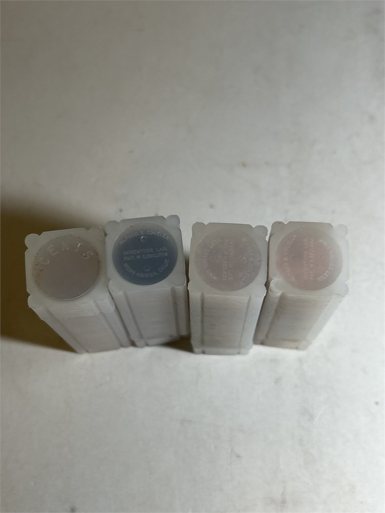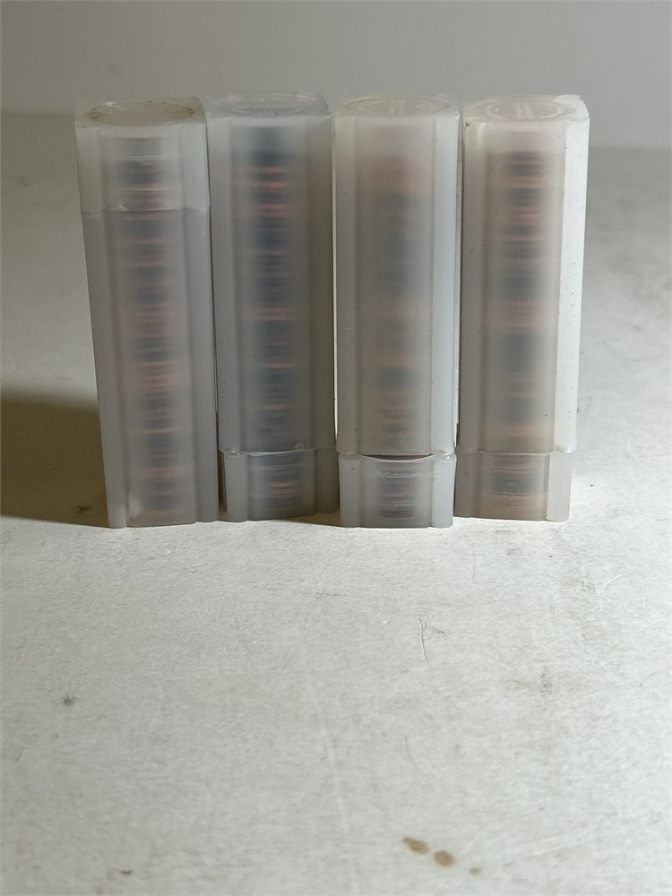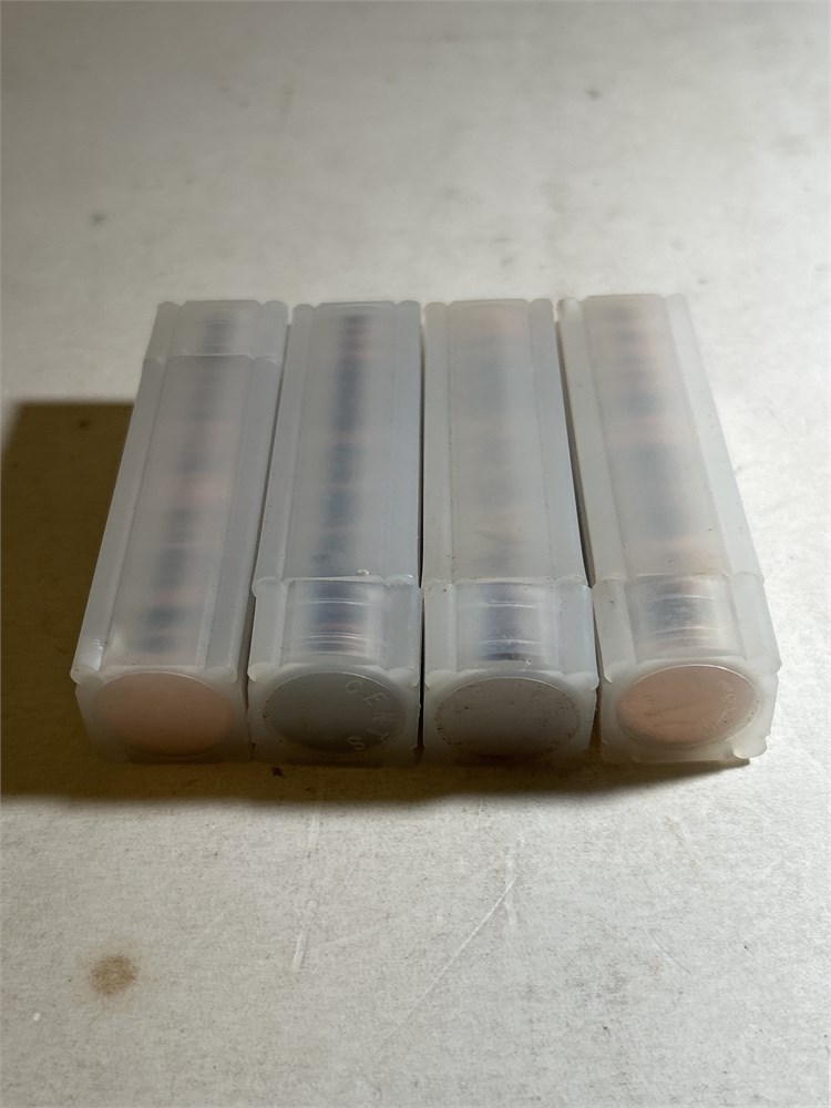 Four rolls of pennies in plastic tubes