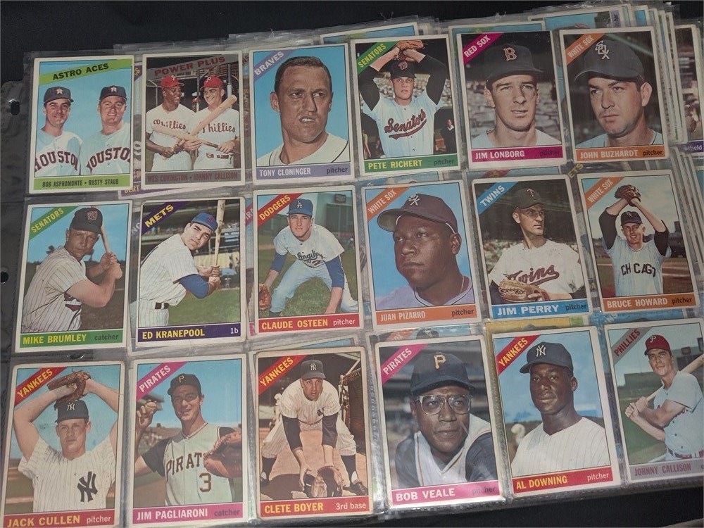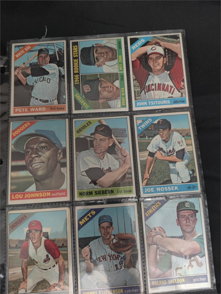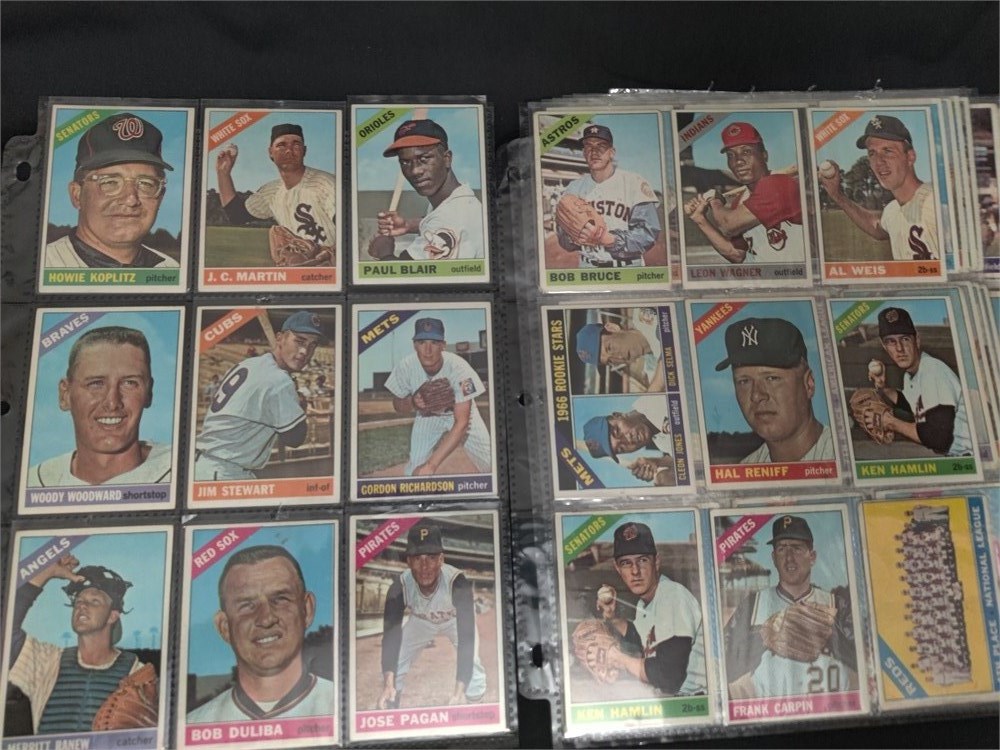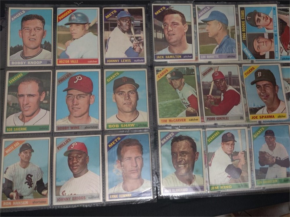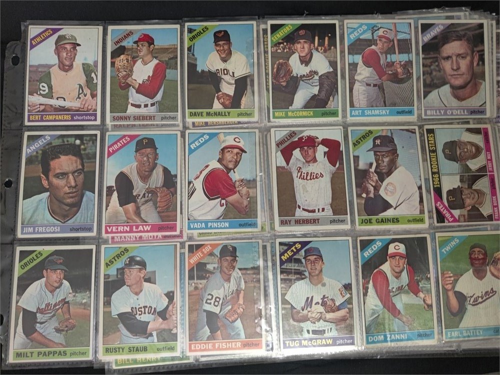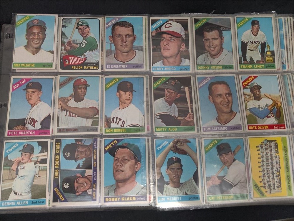 Nice a lot of approximately 184 1966 Topps baseball cards. Doesn't look to be any duplicates. There are some minor stars. Most cards look to be in good condition.