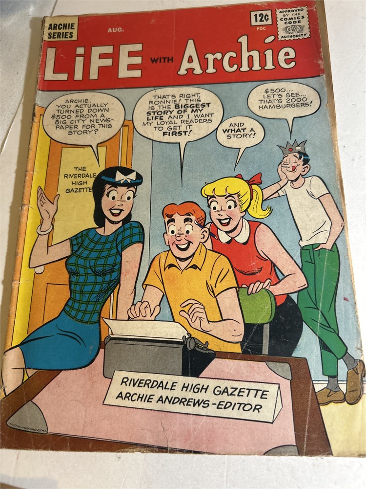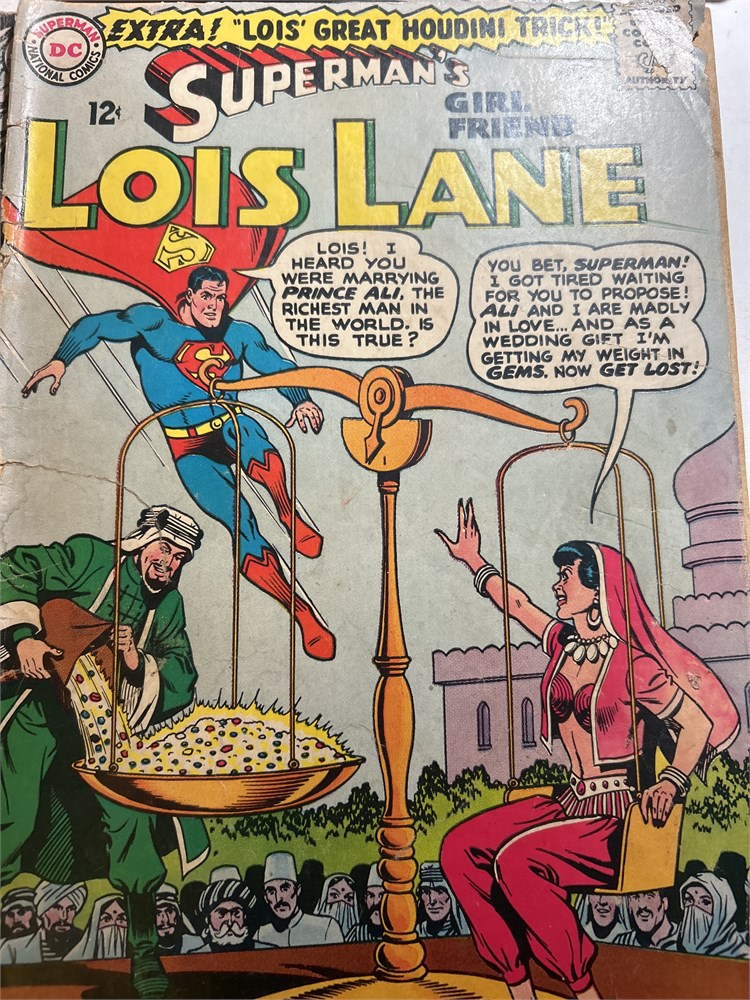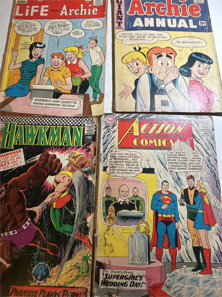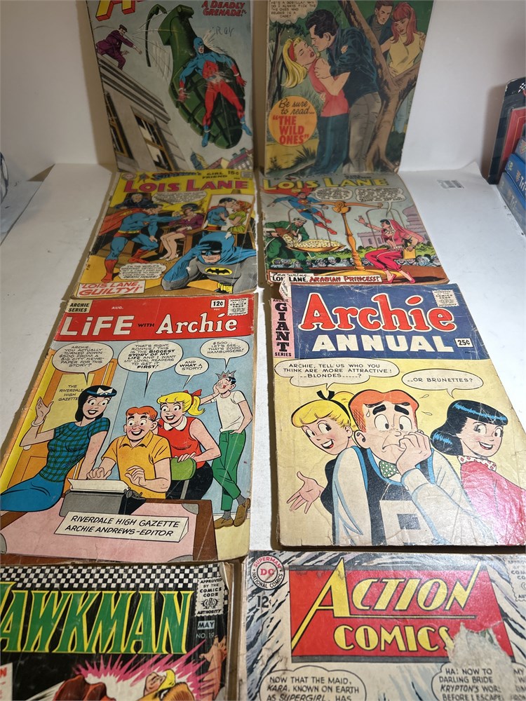 Add a at $.12 book teenage love Lois Lane $.15 book Lois Lane $.12 book the Archies 14th edition $.25 book life with the Archies 12 action, $.12 Hawkman $.12 book