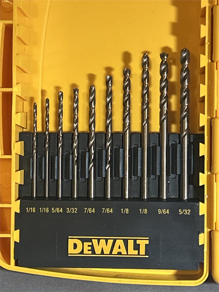 Dewalt drill bits 1/16 through 5/32 3/8 through 3/16. Looks to be new.