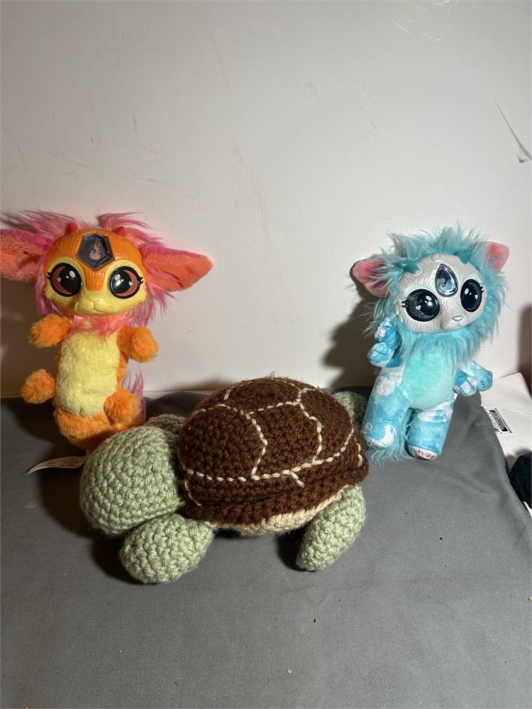 Magic Mixie Mixies Misting Interactive Pet Rainbow Unicorn Dragon Blue Toy P... 8" Magic Mixies Fire Gem Magical Misting Pet Plush Doll Color Surprise Orange and a homemade turtle