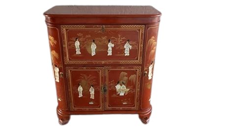 Red Lacquer Asian Style Bar Cabinet