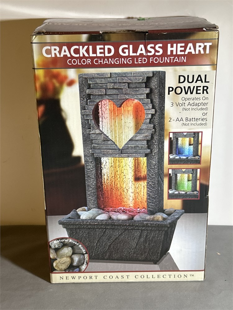Newport Coast Collection Crackled Glass Heart Color Changing LED Fountain (L)