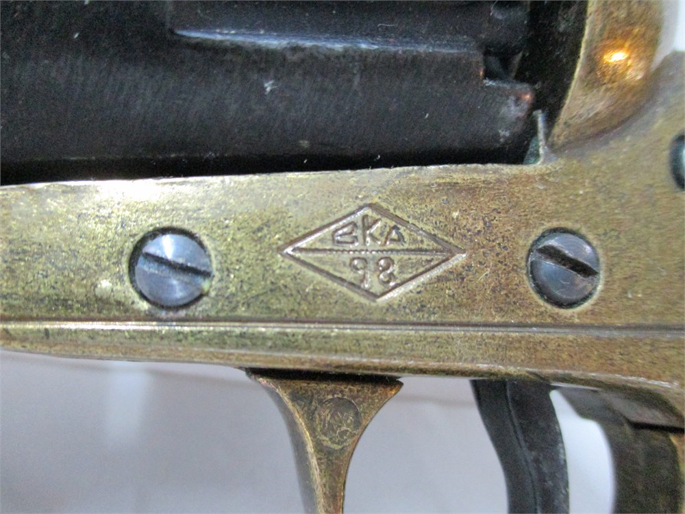 The BKA marking on the pistol usually indicates it is a replica firearm often used as a movie prop or for display purposes.  The "BKA" stands for Bundeskriminalamt" which is the German Federal Criminal Police Office.