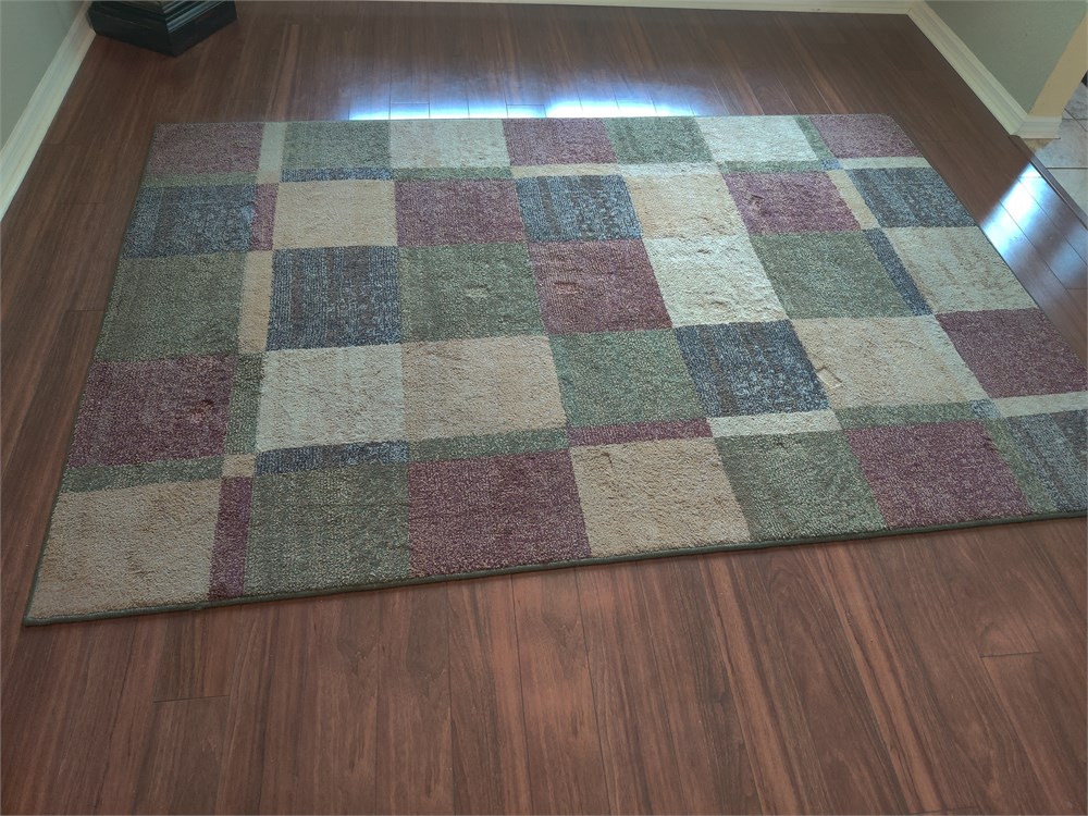 Nice multicolored checkerboard style area rug. Rug measures approximately 7 ft by 4 ft. Looks to be in good condition.