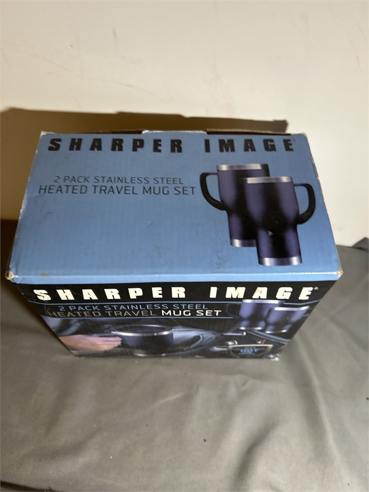 Heated Travel Mug Stainless Steel 2 Pack No Spill Lids Power Supply New Sharper