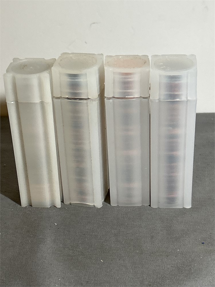Four Rosa of pennies and plastic tubes. Maybe a big treasure good luck.
