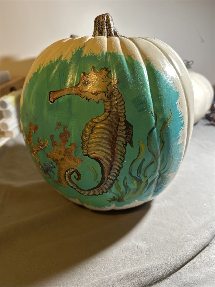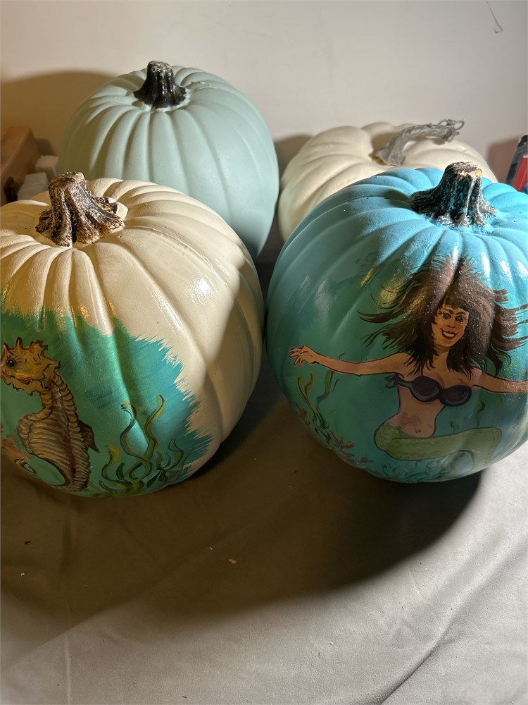 BLUE 6" BEACH COASTAL THEME PUMPKINS  STARFISH FLAMINGO And mermaid two extra pumpkins