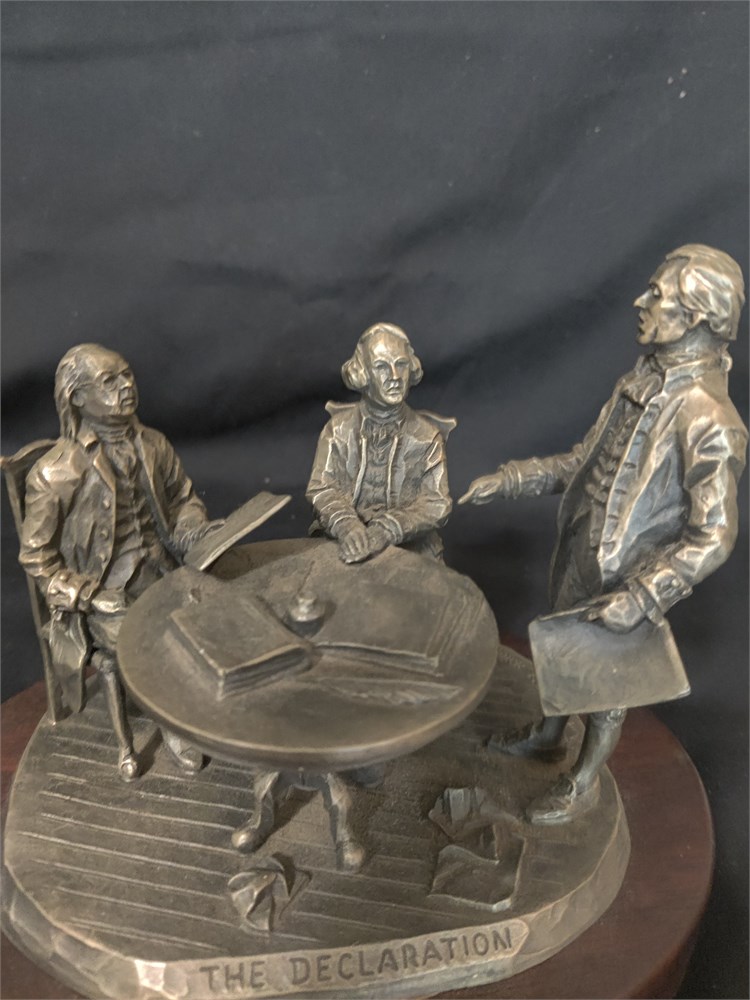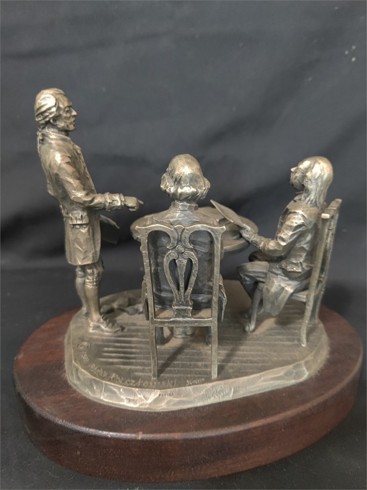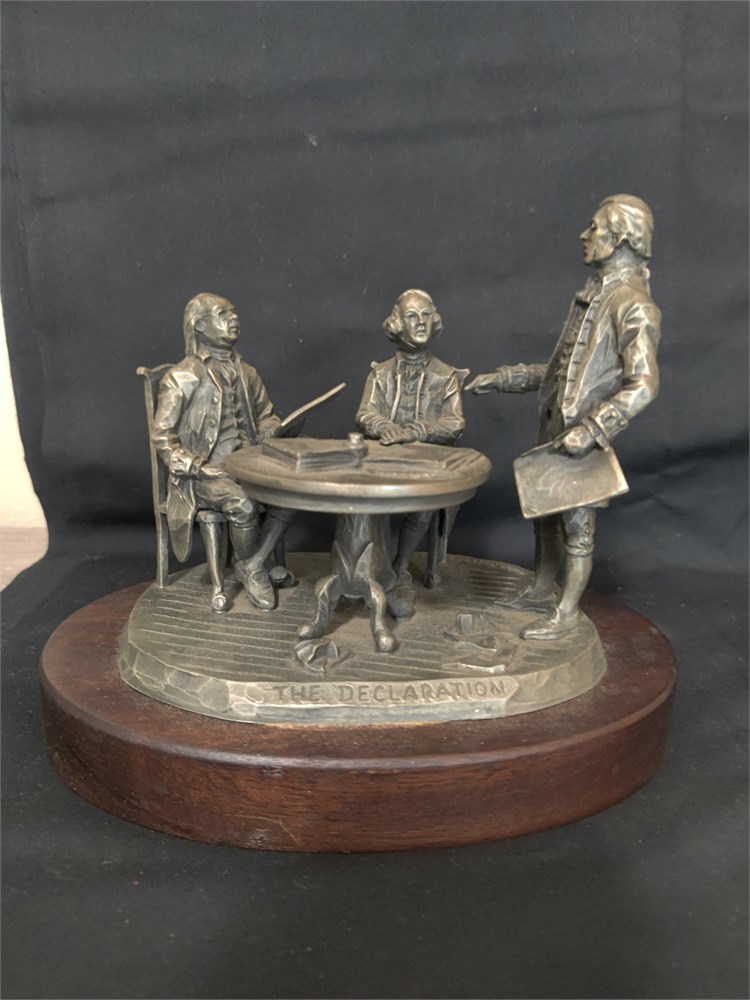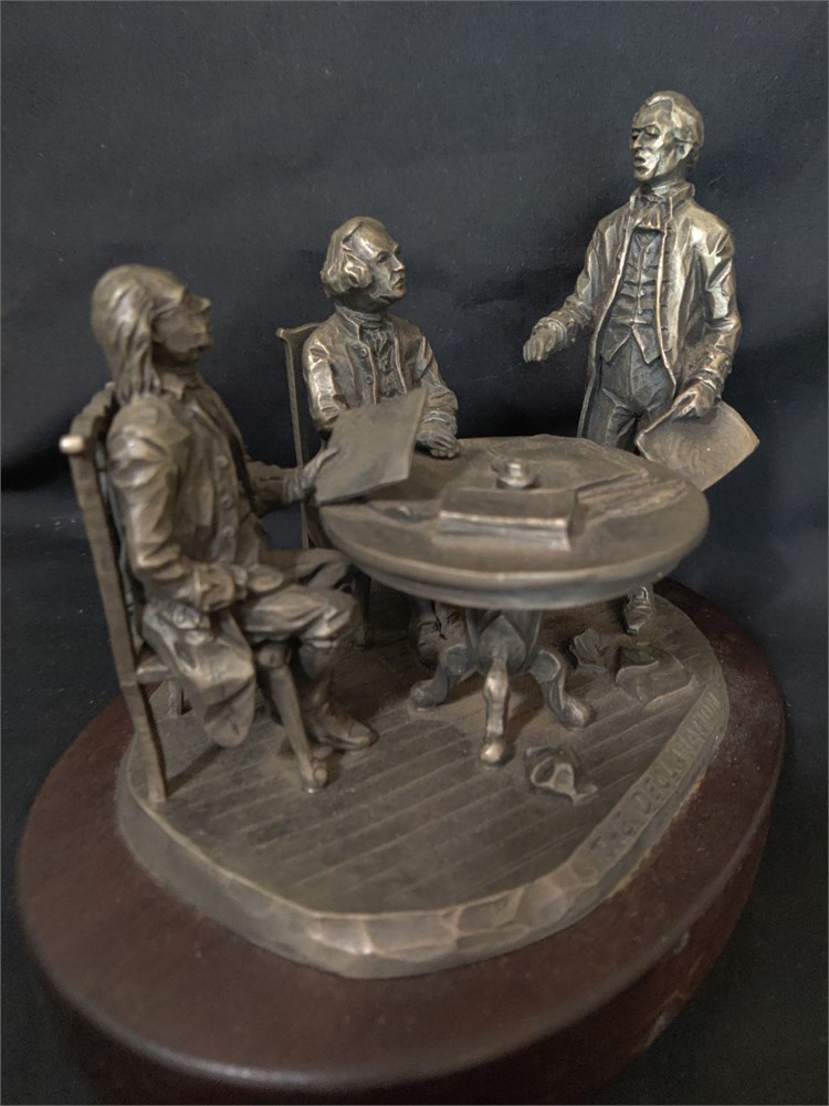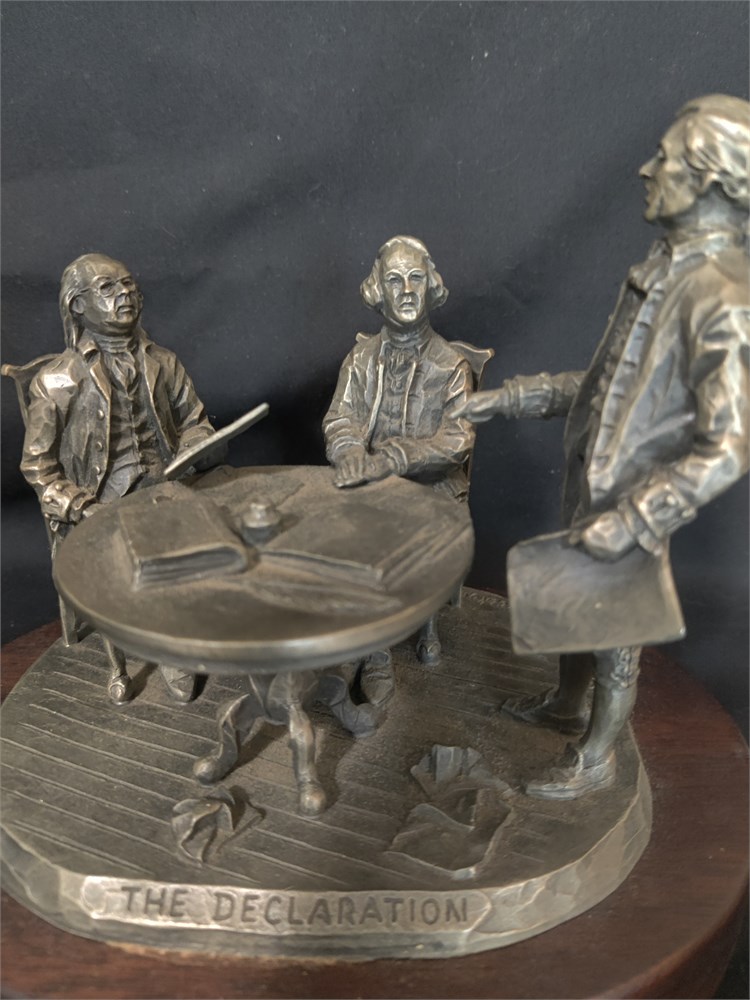 PHILIP KRACZKOWSKI 1973  revolutionary War pewter HUDSON "THE DECLARATION". Figures shown are Thomas Jefferson, George Washington and Benjamin Franklin.