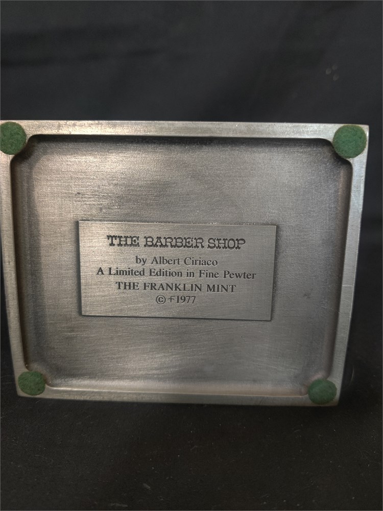Metal Pewter 4X5" BARBER SHOP Franklin Mint Statute Figurine.