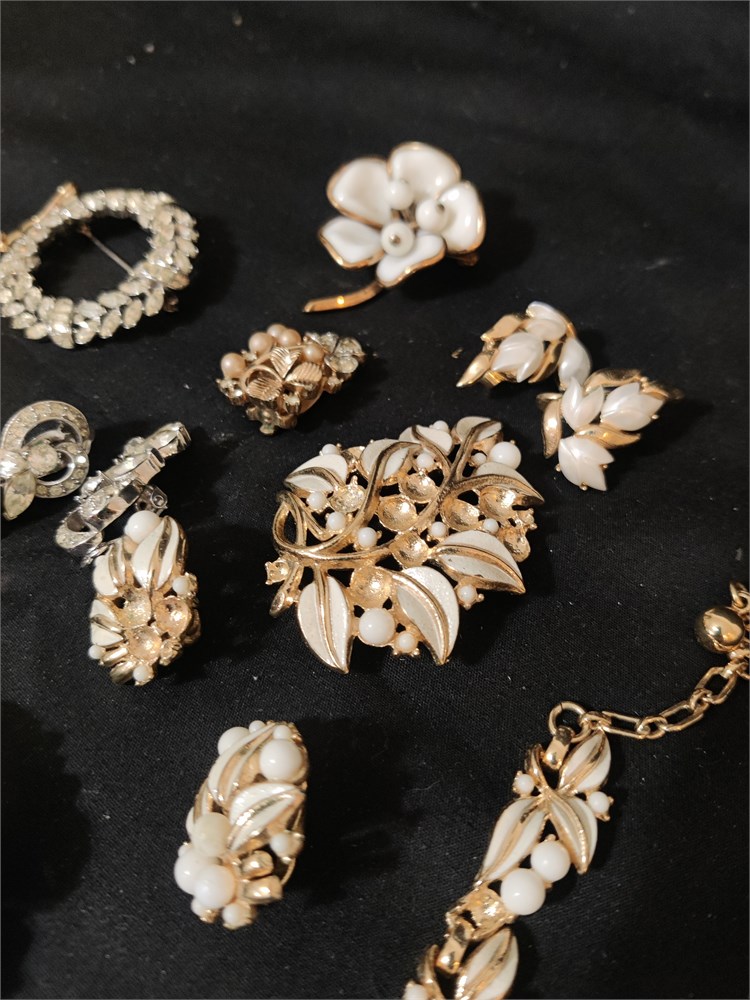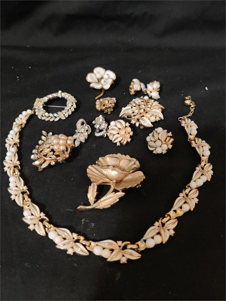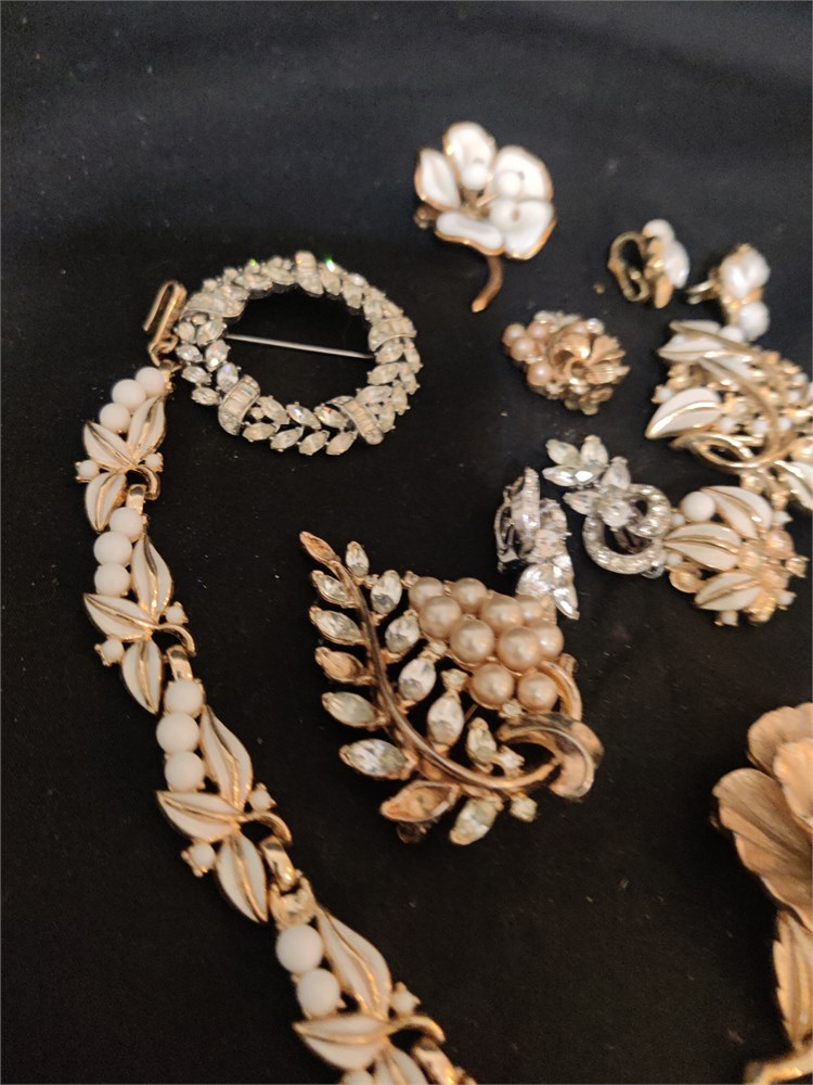 Nice vintage lot of Trifari. Includes necklace earrings and several brooches.