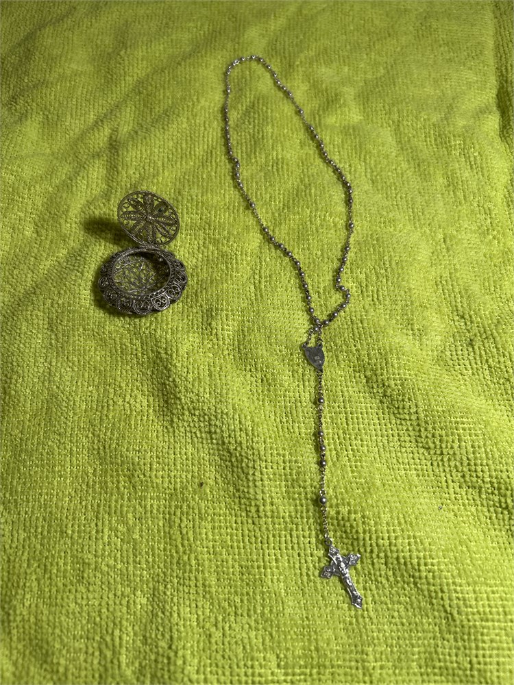 Vintage sterling silver Rosary necklace very very old  and Filigree Floral Round Double Strand Necklace Clasp necklace 14 inches