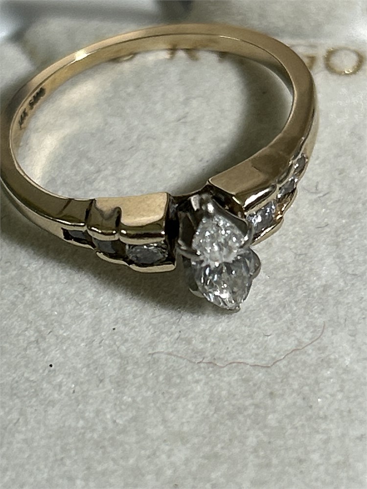 14 carat diamond ring, seven diamonds 2.45 g Size 6 3/4