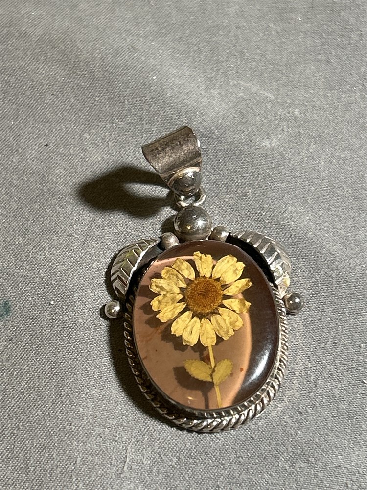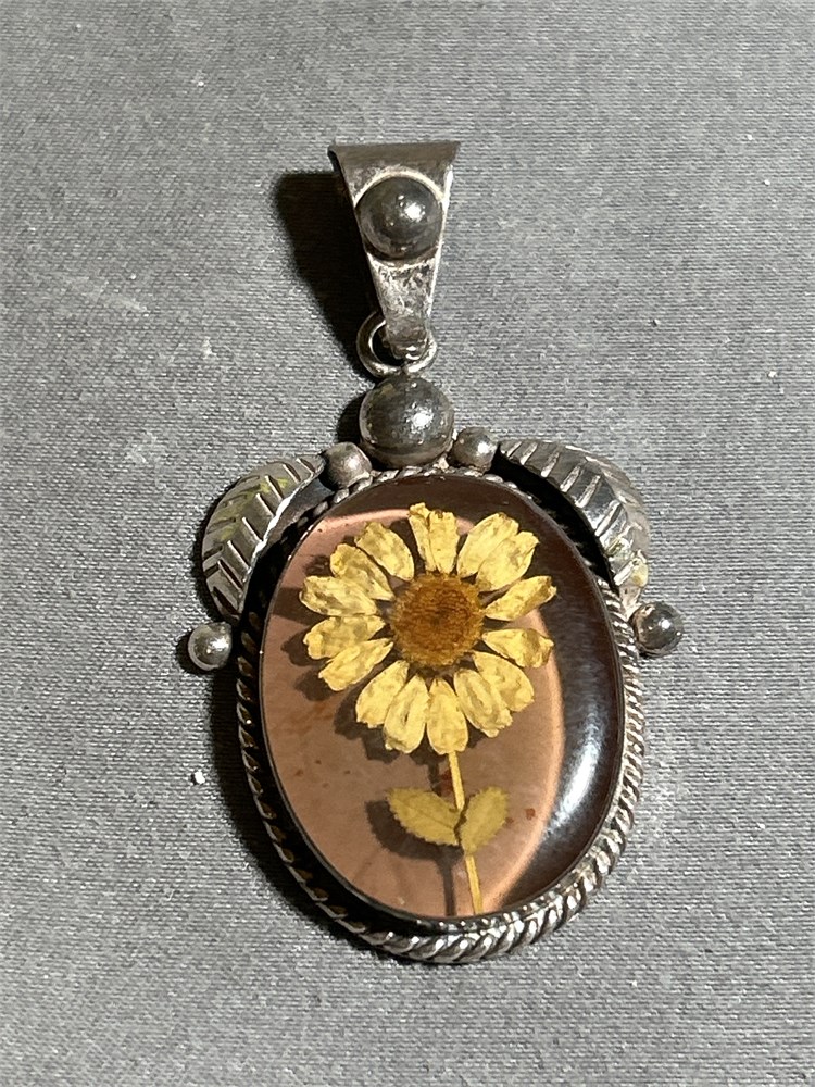 VintageResin Pressed Flower Sterling Silver 925 Pendant 11.23 g