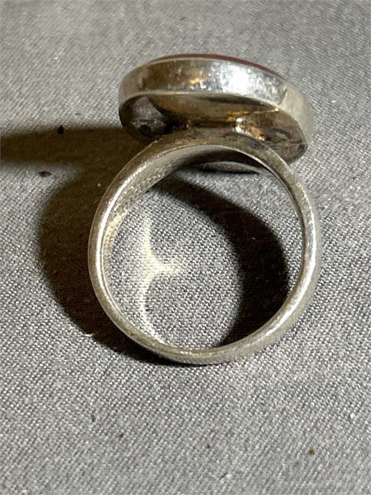 Sterling Silver Red Turquoise 8.73 g size 7 oval stone