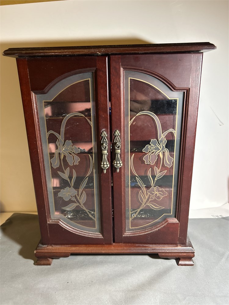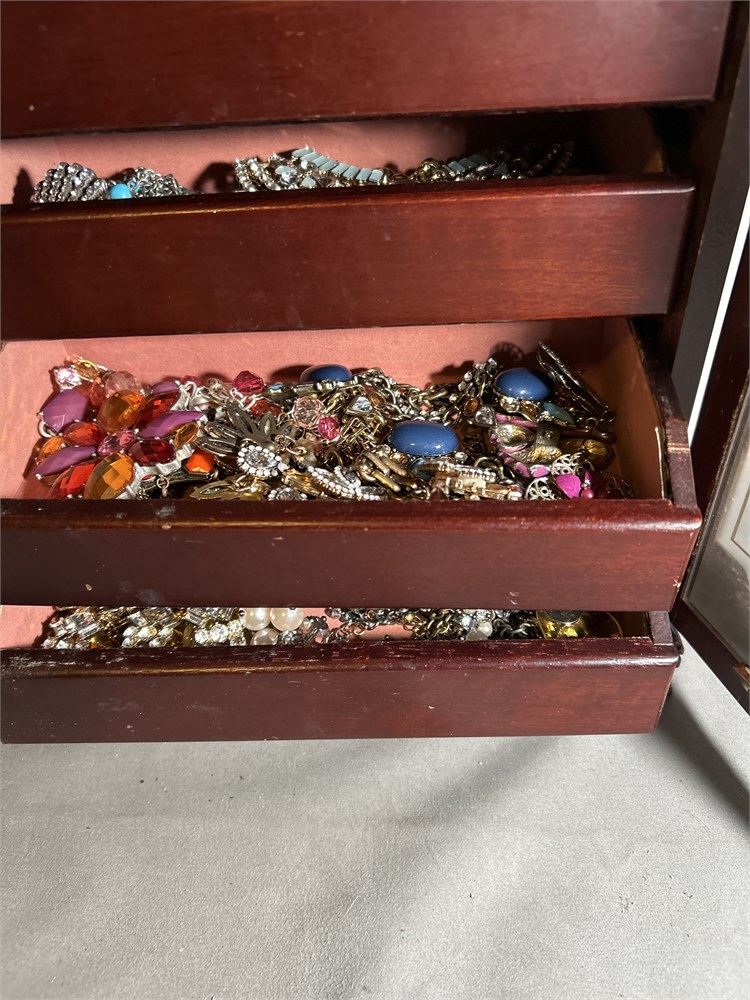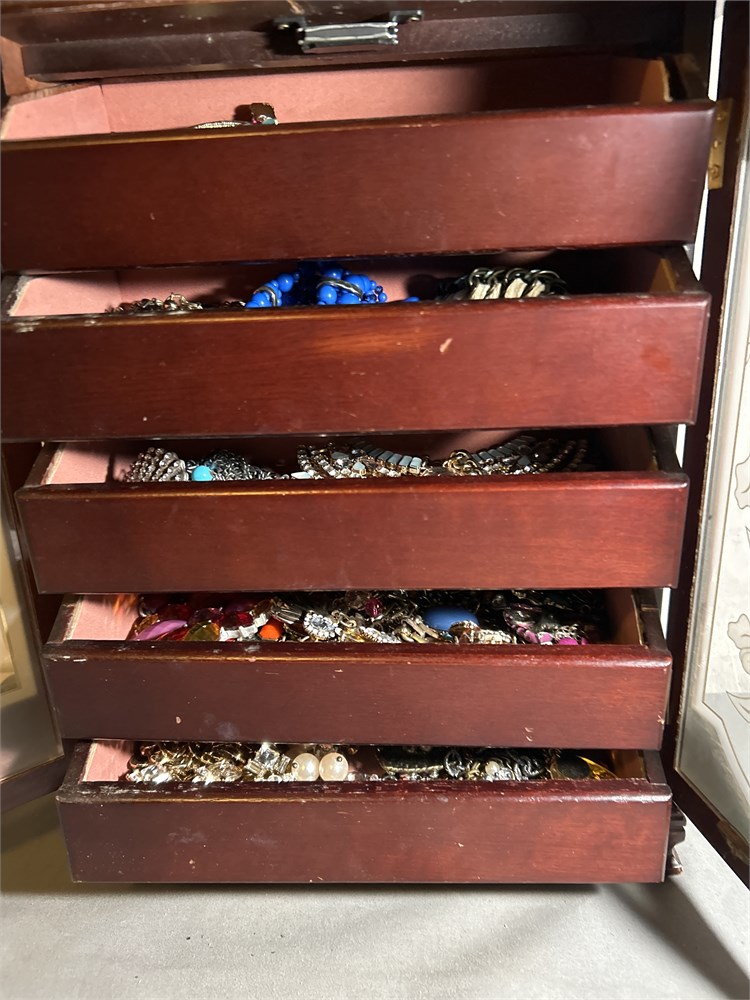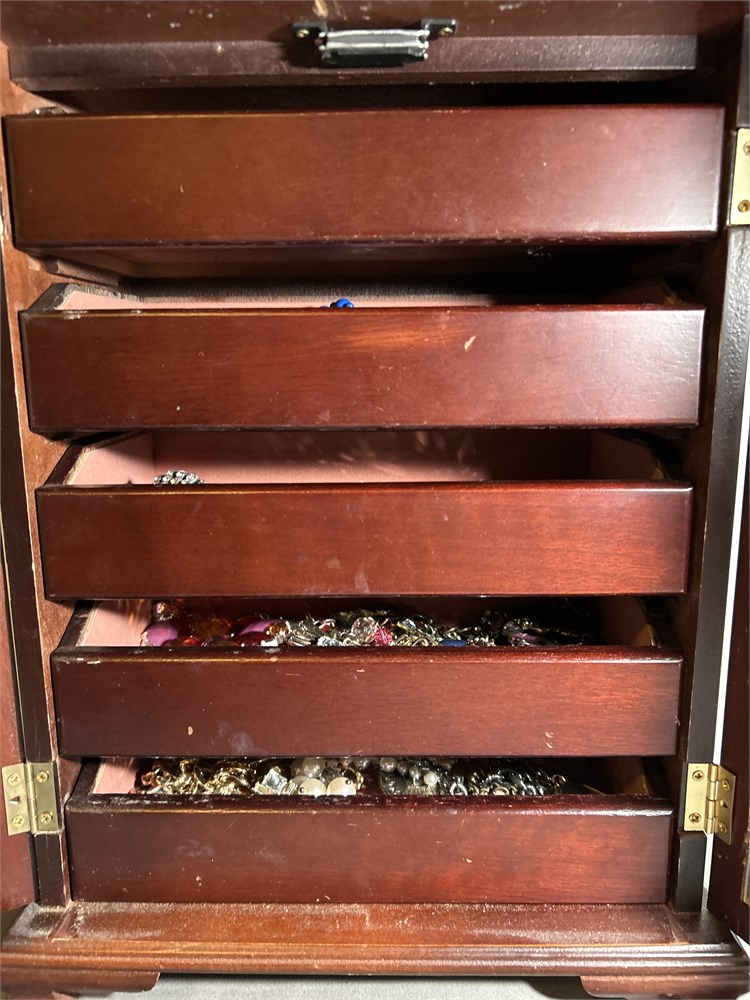 Dark wood jewelry box 5 drawers full