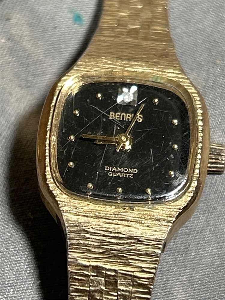 Woman’s Timex  watch CR 1216 Benrus  diamond quartz Golden silver tone