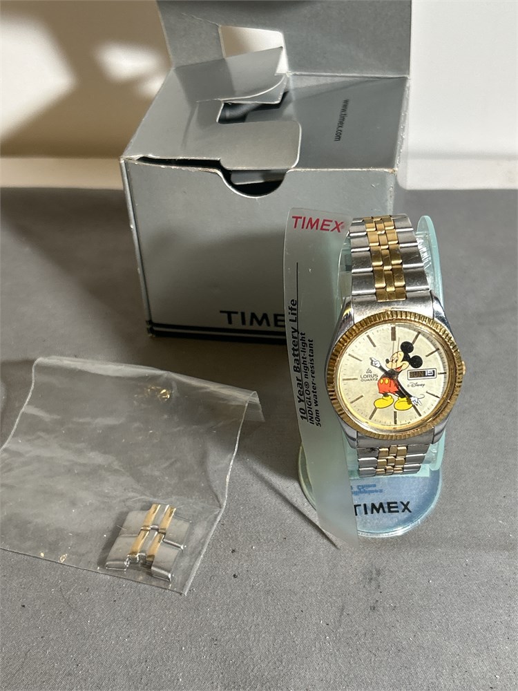 Timex Vintage  Quartz Walt Disney Mickey Mouse Mens Wrist Watch all the original packaging never been out of the box has extra band clips