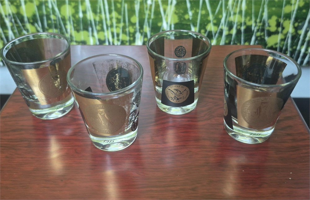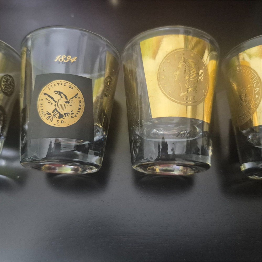 Vintage Cera Clear Glass Black & Gold Coin Dot Shot Glasses [set 4]