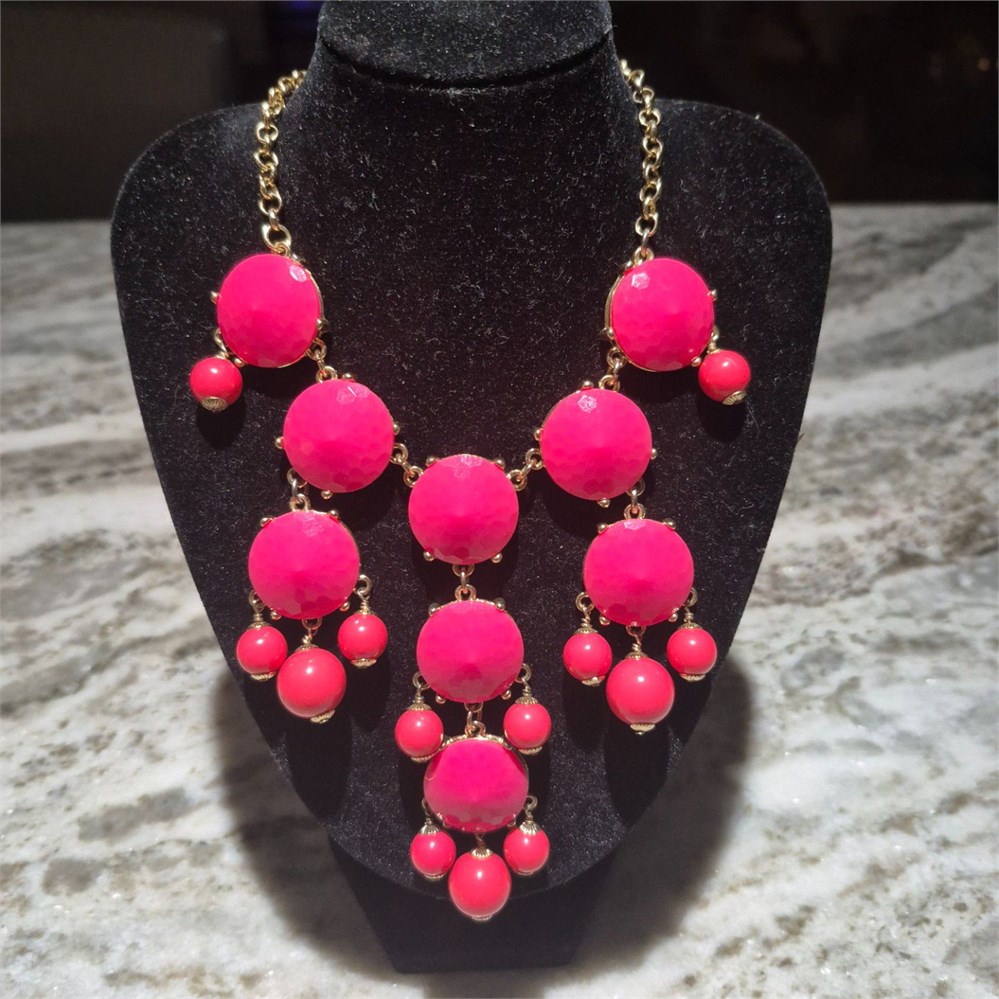 J.Crew - Hot Pink Faceted Stones Statement Necklace - Hot Pink Bubble Necklace