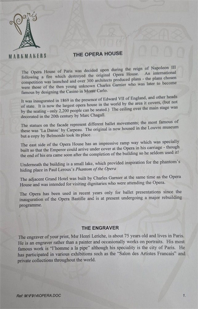 Paris Opera House ~ original engraving by Henri Leriche