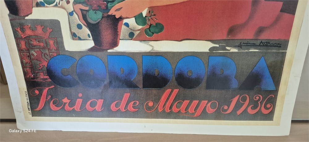 The product is a reproduction of a 1936 vintage travel poster from Cordoba, Spain. Measuring 12" X 16" on matte paper, this licensed reprint features a tourism-themed design that captures the essence of travel. The poster is unframed and comes rolled up for easy shipping and handling. Perfect for art lovers and travel enthusiasts alike, this piece offers a glimpse into the charm and beauty of Spain's Cordoba region.