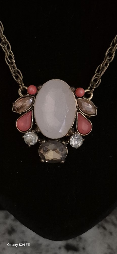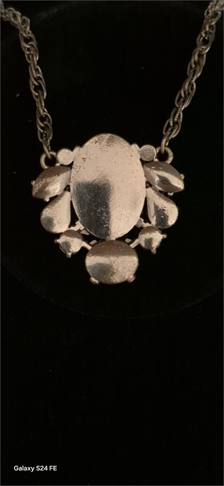 Very Pretty Monet Vintage Gold Tone Rhinestone Pendant Necklace....