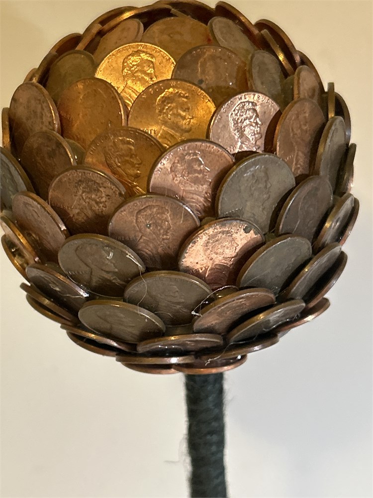 looks to be one of a kind stands 11 1/2 inches tall by 3 1/2 inches wide definitely unique