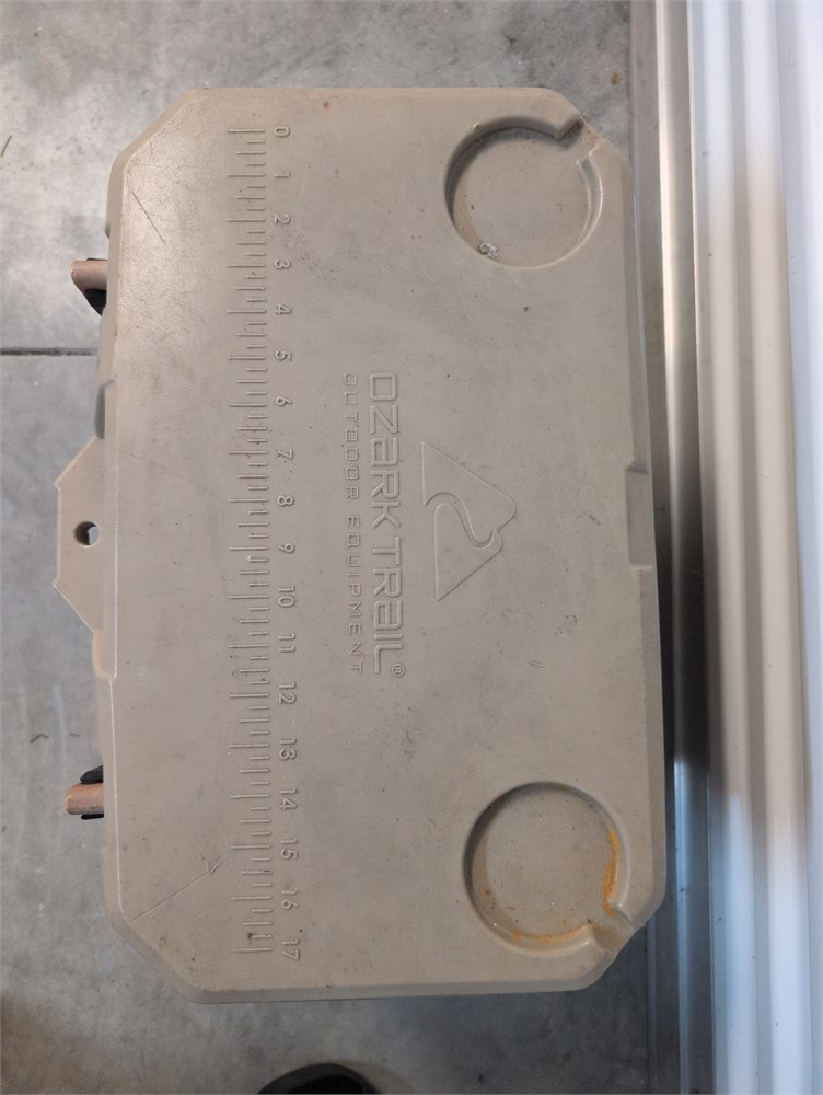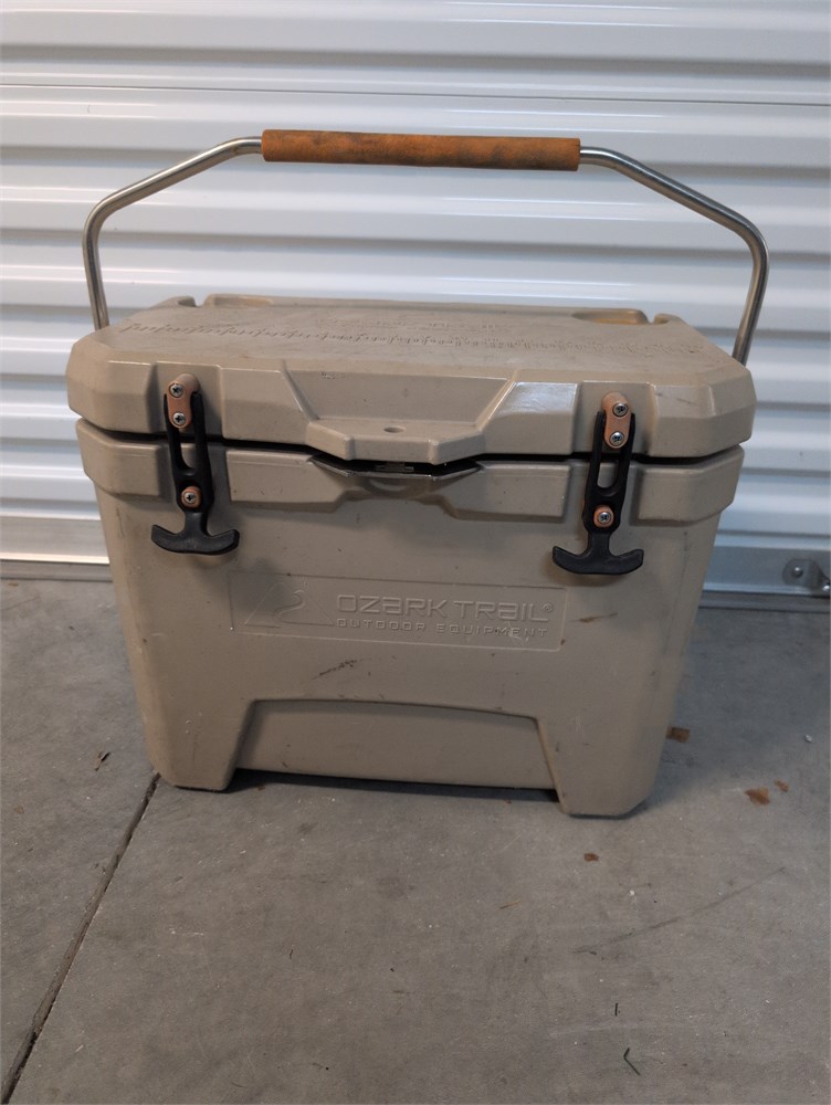 This is a deep freeze cooler, ice lasts for days, it is a yeti style. It has the drain on the side Chrome handle and two latches. Everything is in order works well. Could use a little cleaning. It is approximately 20 in wide these retail for over $100 new