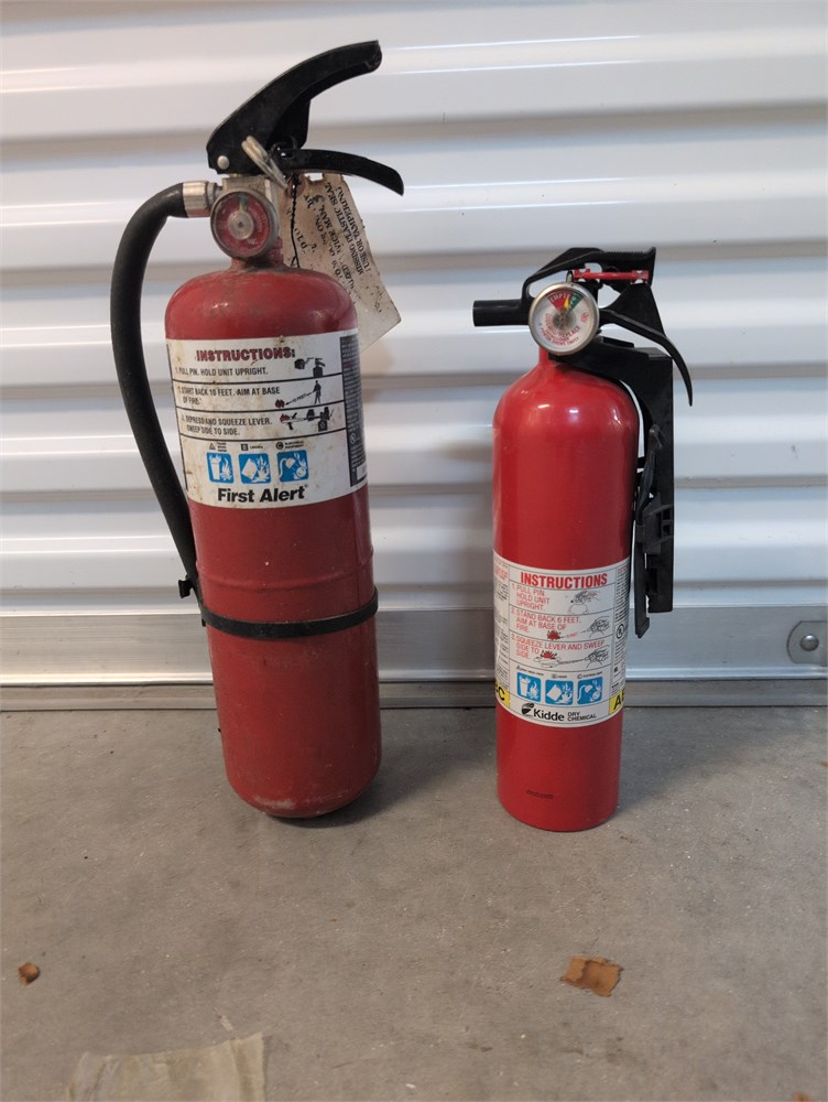 The larger one is a first alert. The smaller one is a kidde the larger One is a first alert. They are both in good usable condition. The first alert is fully charged. Ready to go. The kitty is charged but at the low end still ready to go. You get both for one bid