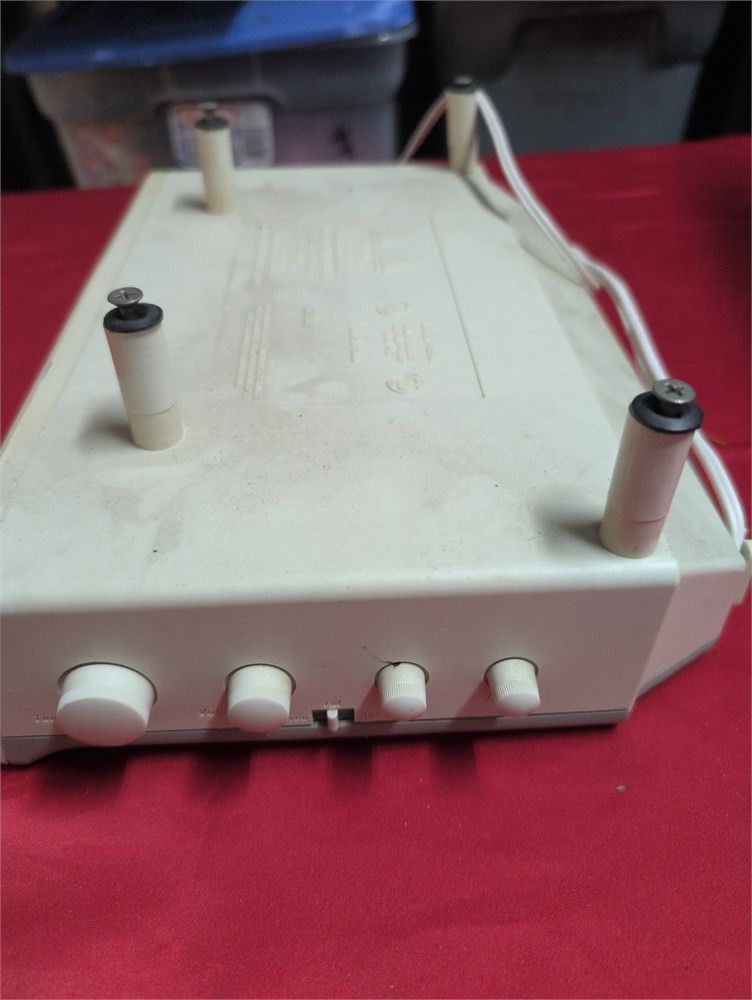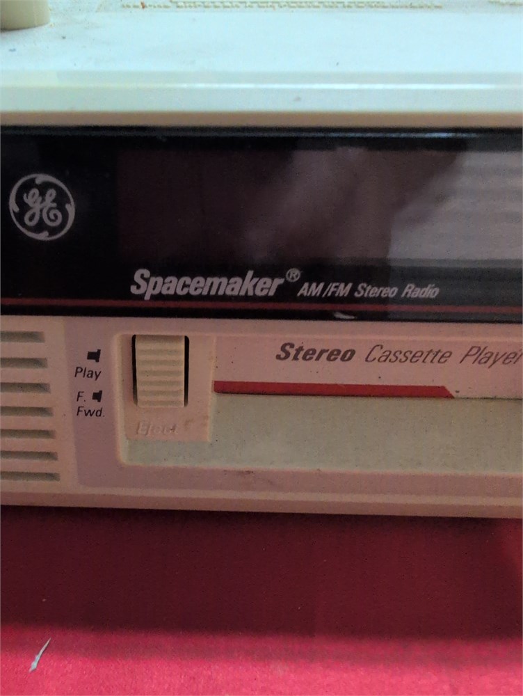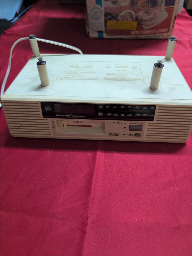 This is a very cool two-speaker stereo. It is AM FM with cassette player. It has been tested. The clock works fine, the radio works, did not test the cassette player. Player. Has all the hardware included ready to go