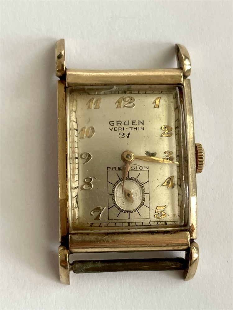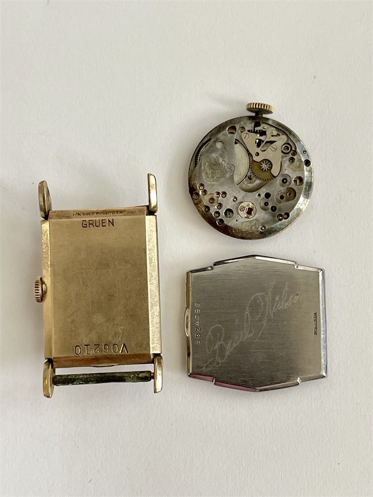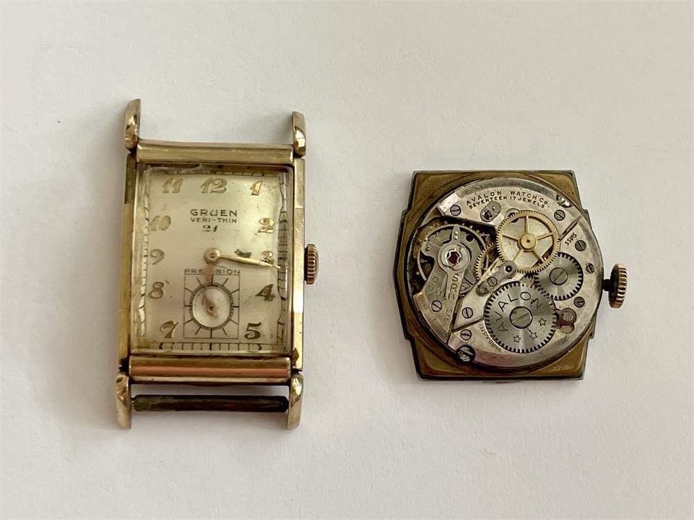 An Avalon 17-jewel watch movement and case back.  And a Gruen "Veri-Thin" vintage watch, no band.