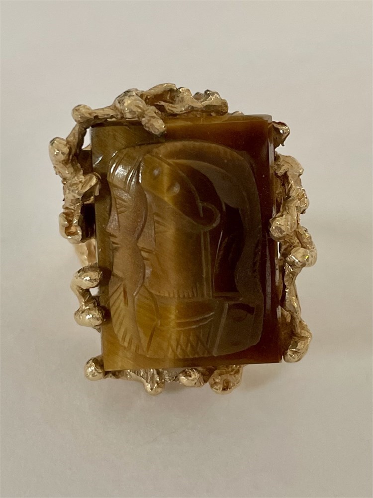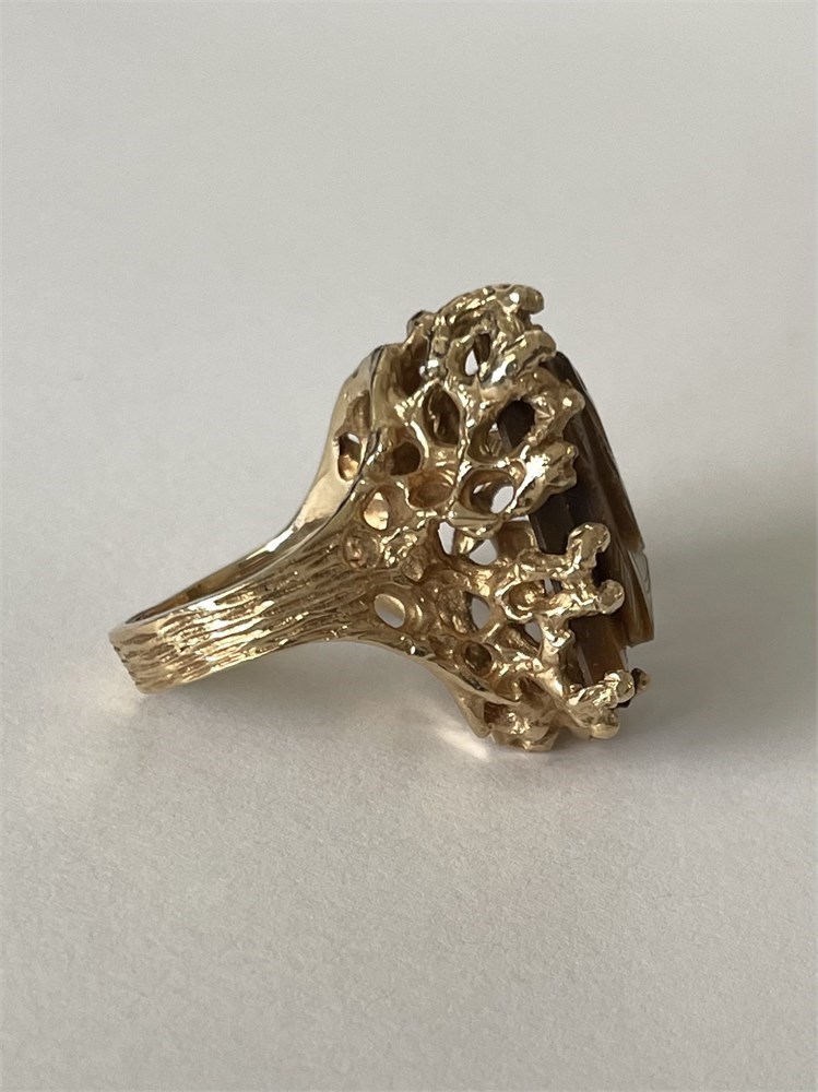 14K Gold Brutalist Ring with Tiger Eye Cameo (18.7 g)