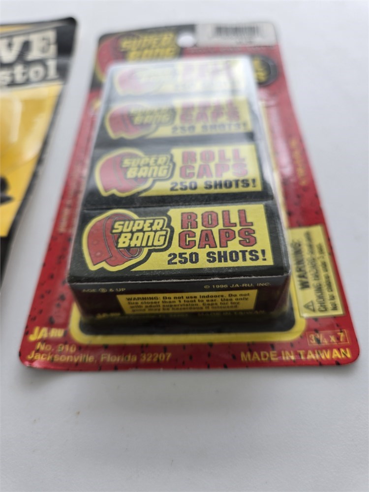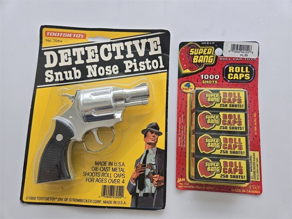 Vintage 1990 Tootsietoy Detective Snub Nose Pistol Cap Gun &1996 Ja-Ru Roll Caps