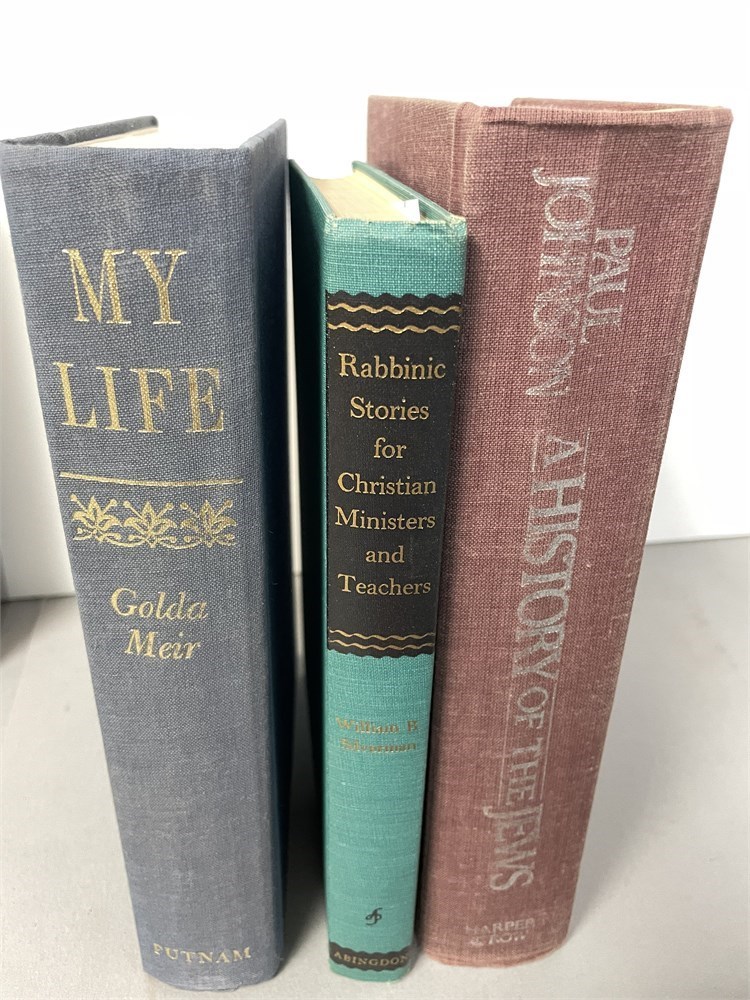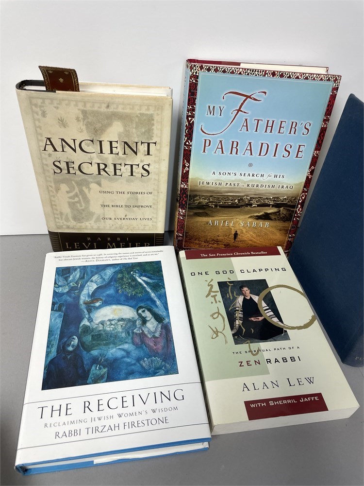 10 books on assorted topics pertaining to Judaism.  Modern hardcover books, a pictorial history, Rabbinic stories, others.