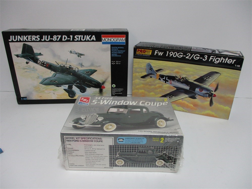 Lot of 3 Vintage Model Kits – WWII Aircraft & Classic Car