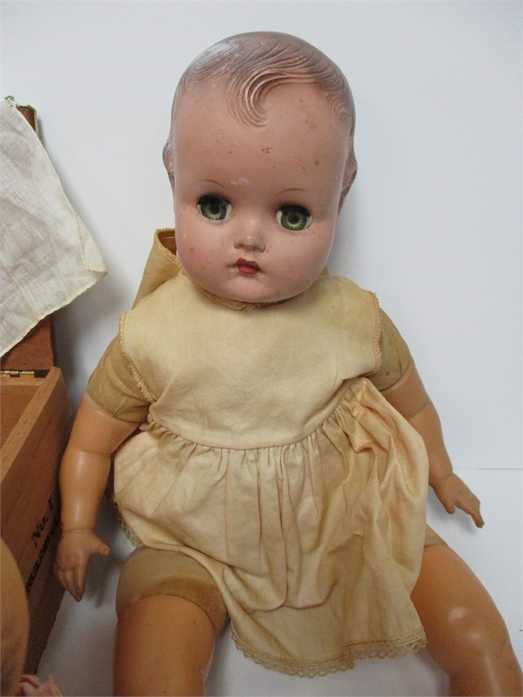 • (2) Large composition baby dolls with painted features and cloth bodies (wear consistent with age)