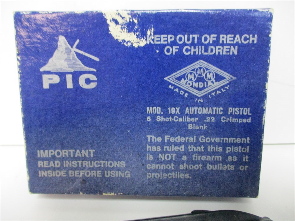 • PIC Mod. 10X Automatic Pistol – .22 caliber crimped blank. Comes with its original factory box and markings.