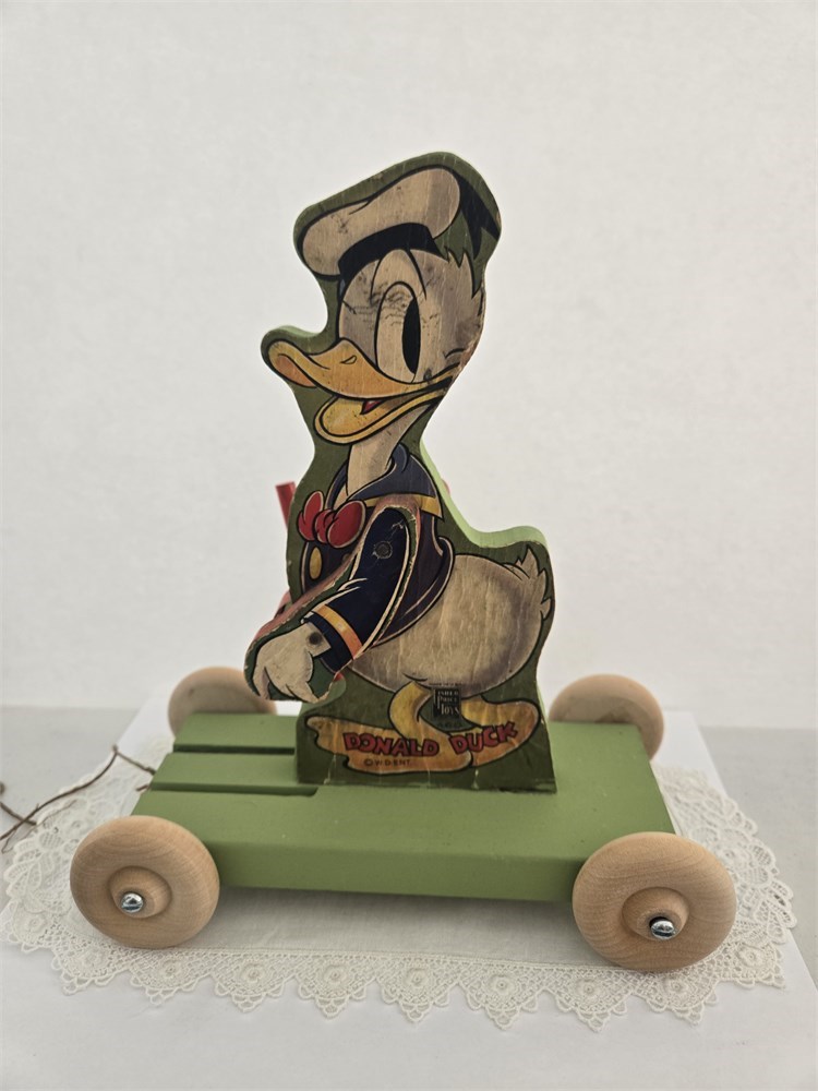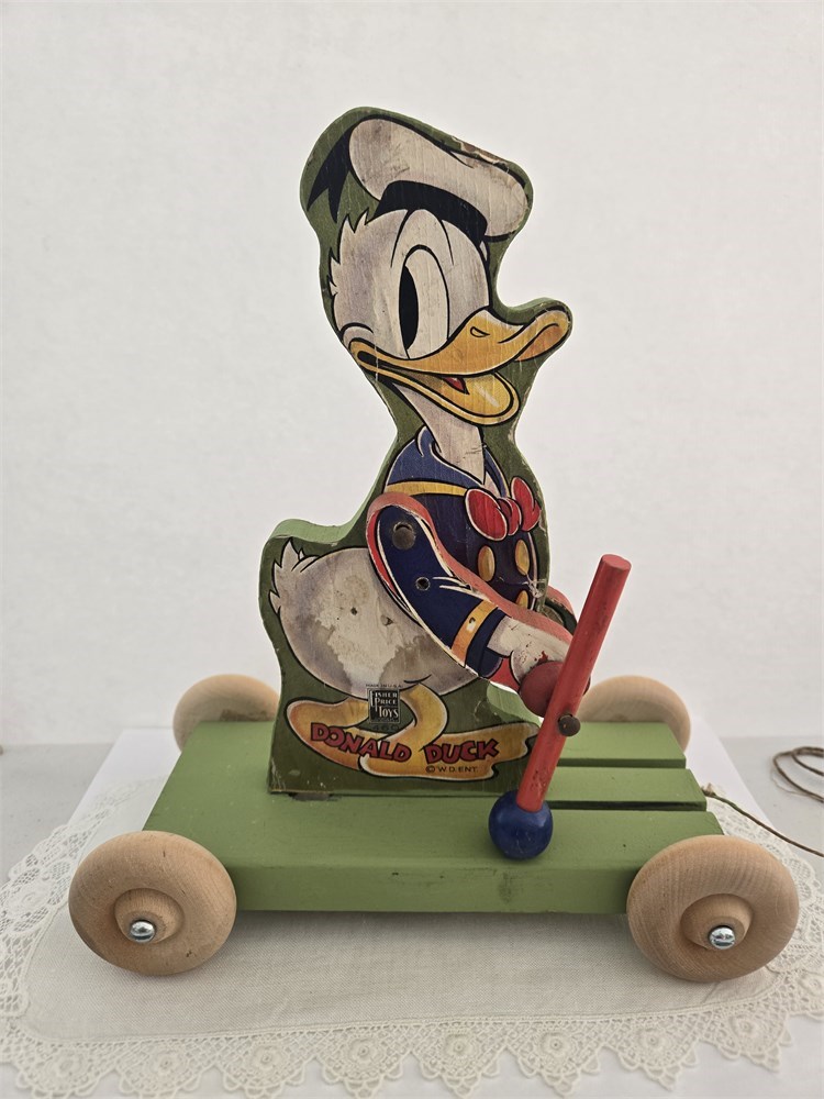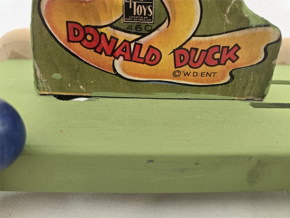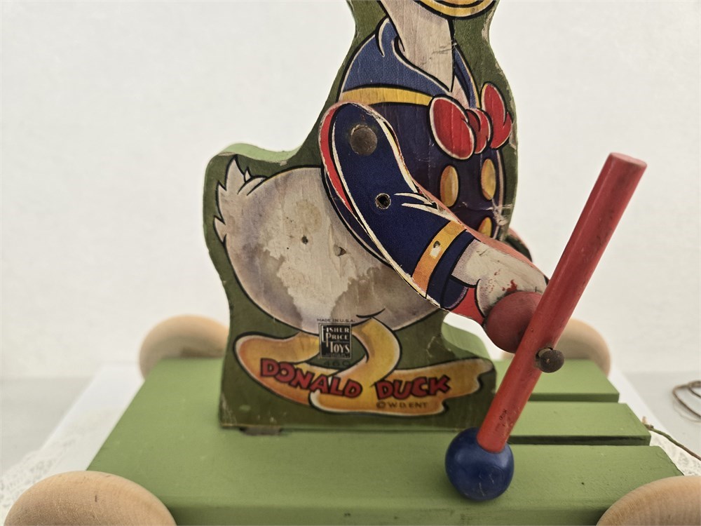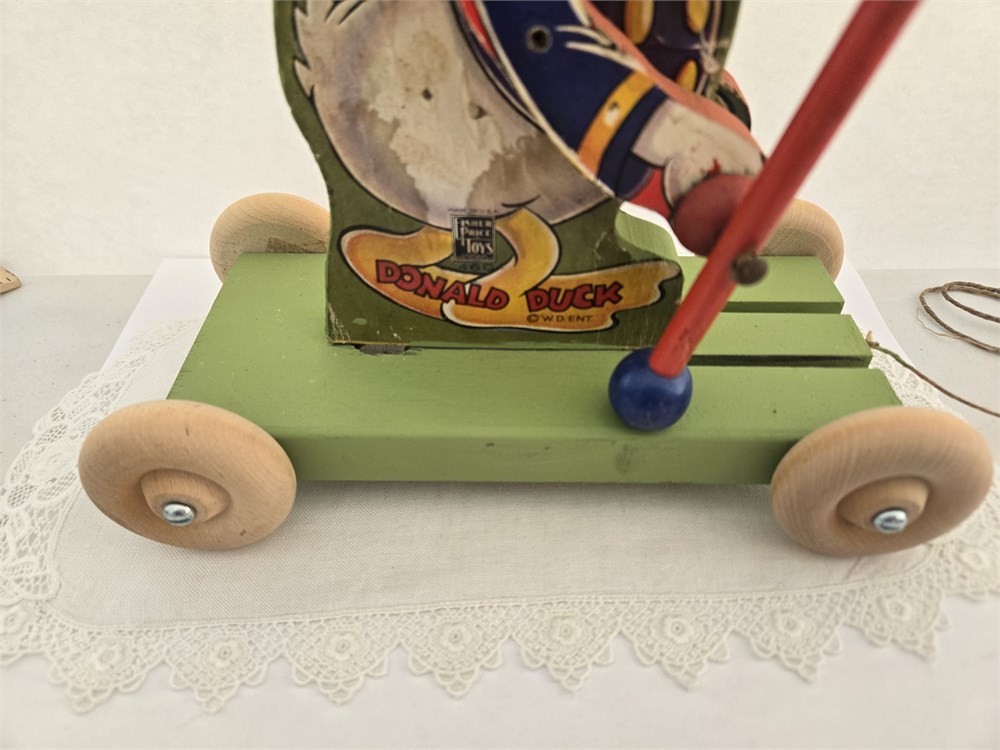 Vintage Fisher-Price Donald Duck Wooden Pull Toy, c. 1940s–50s Walt Disney ENT