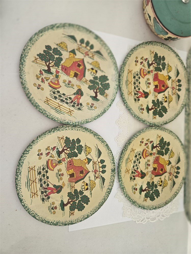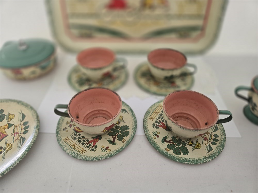 A wonderful collectible set representing mid-century lithographed toyware, perfect for display.