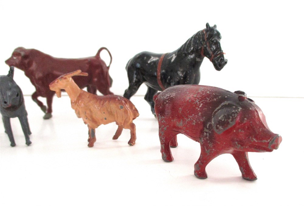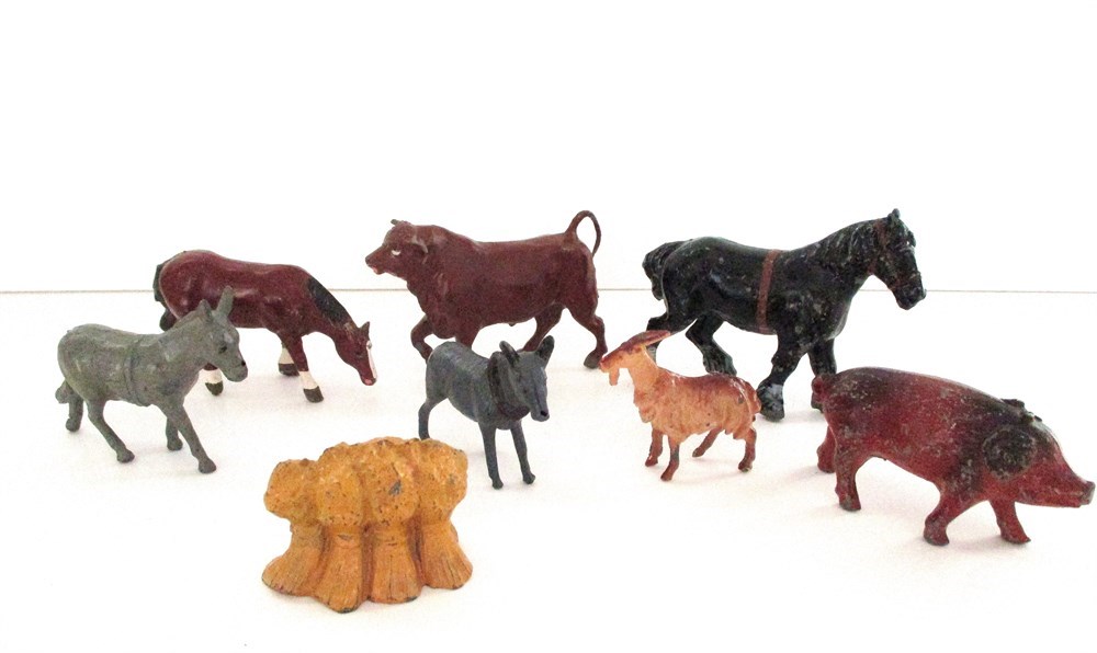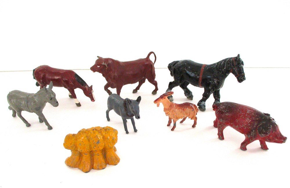 Vintage Farm Animals, Cast Metal, Made in England, Lot of 8