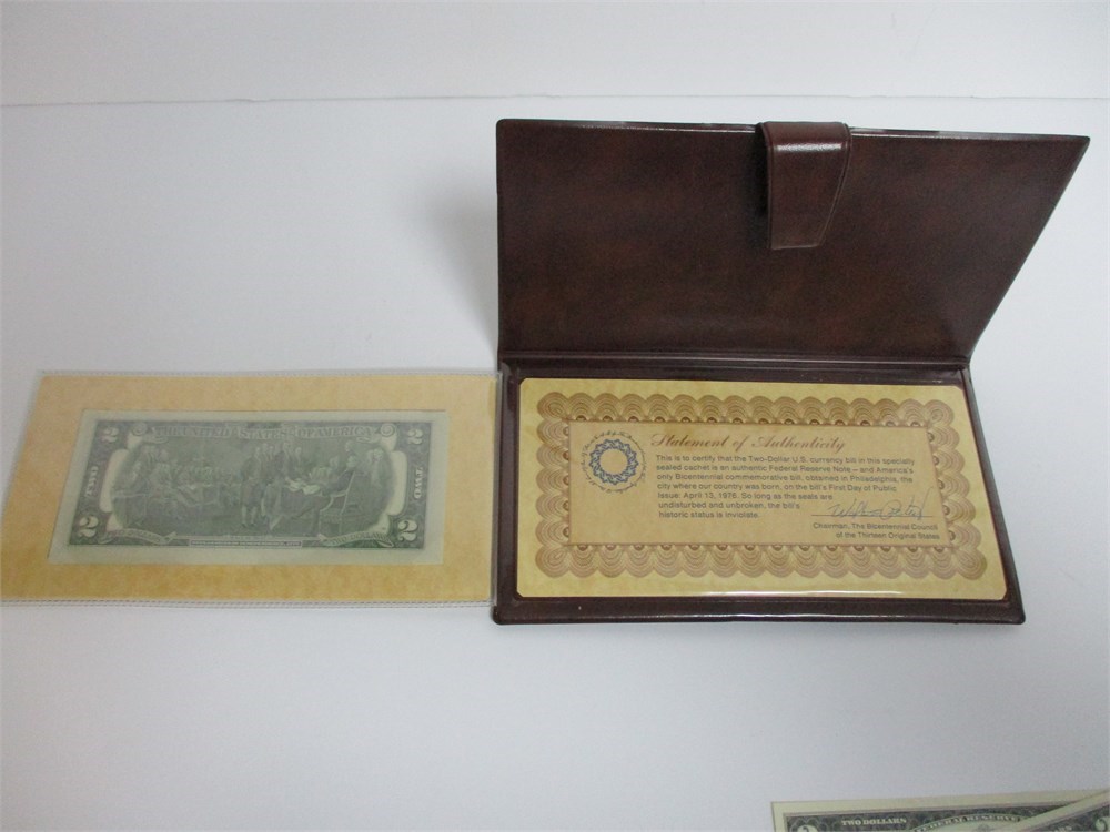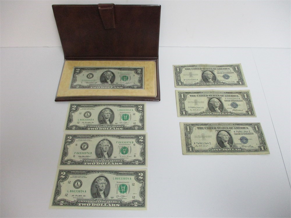$2 Commemorative Bill, + 3 loose & 3 - $1 Silver Certificates