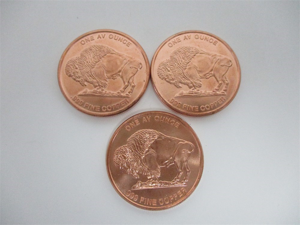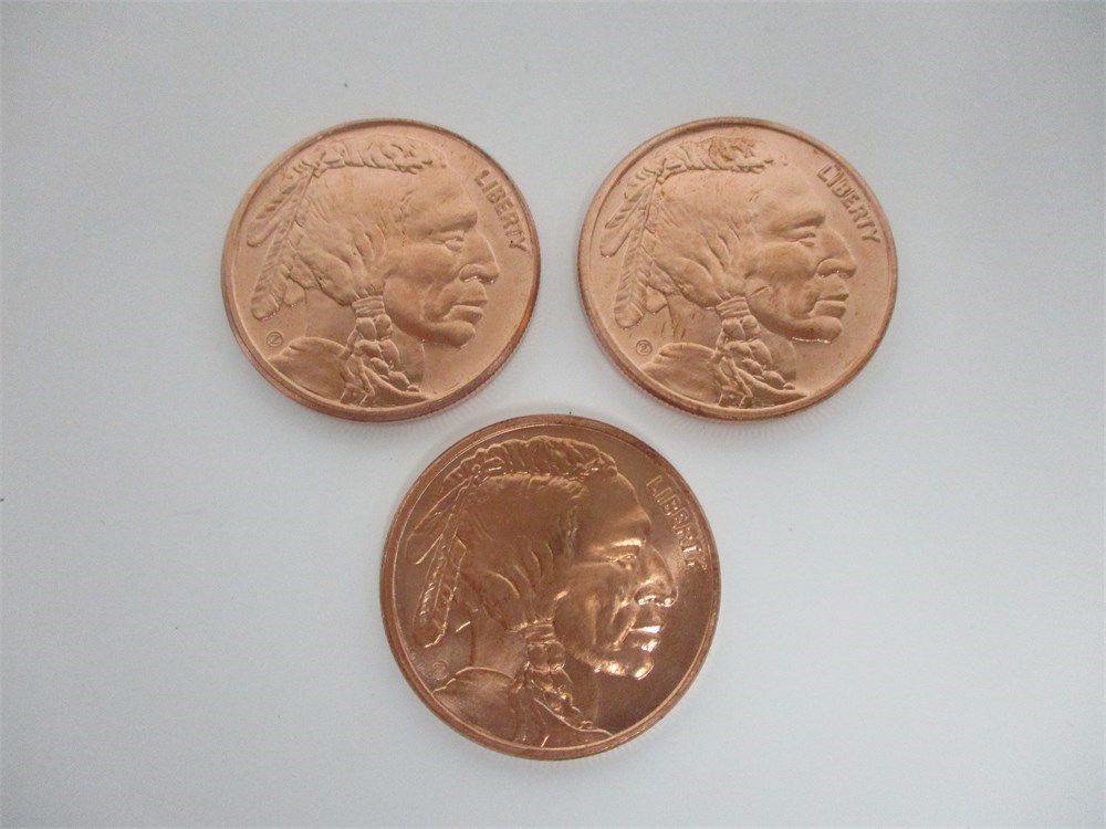 Set of 3, One AV Ounce Buffalo Head Copper Coins.