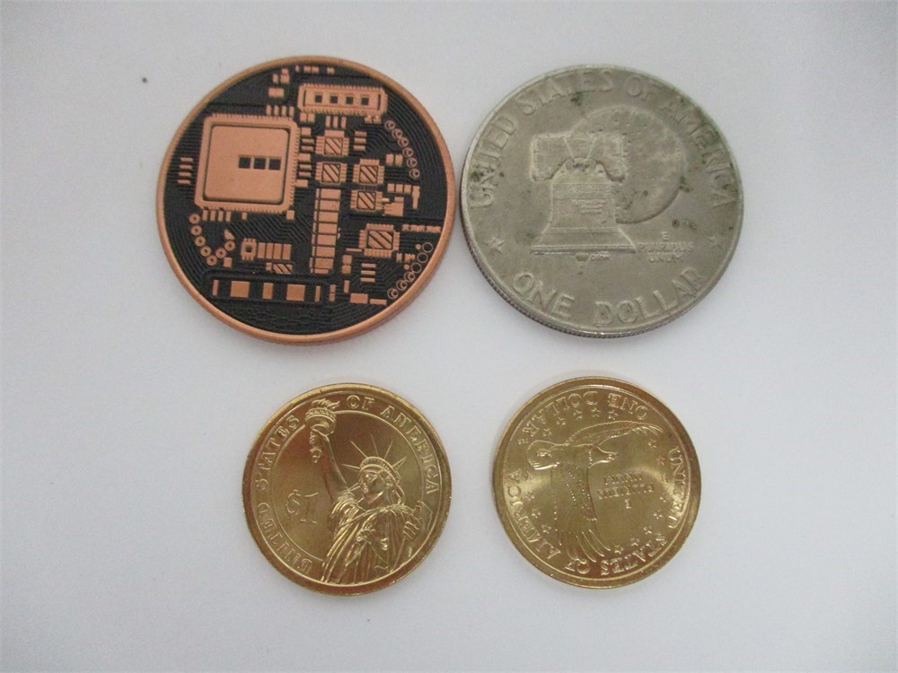 Lot of 4, $1 Andrew Jackson, $1 Sacawagea, One Bitcoin, Liberty 1/2 Coins