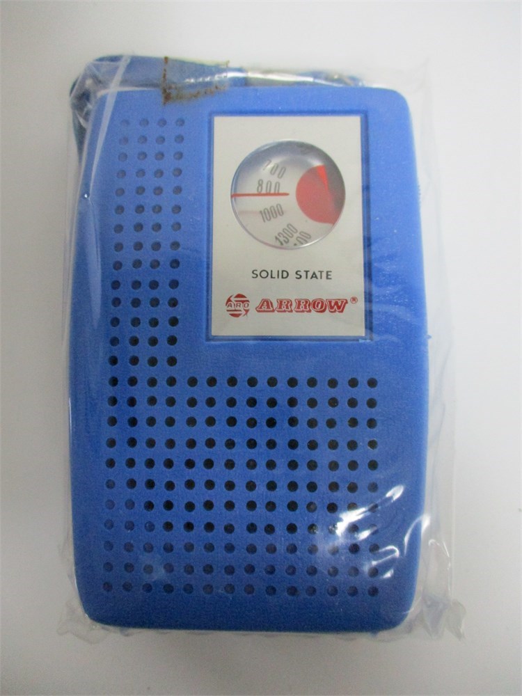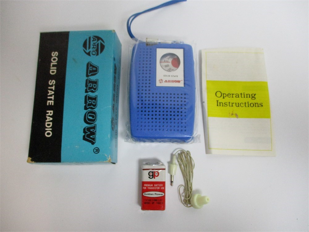• The original blue Arrow Solid State pocket radio (AM band, monaural).