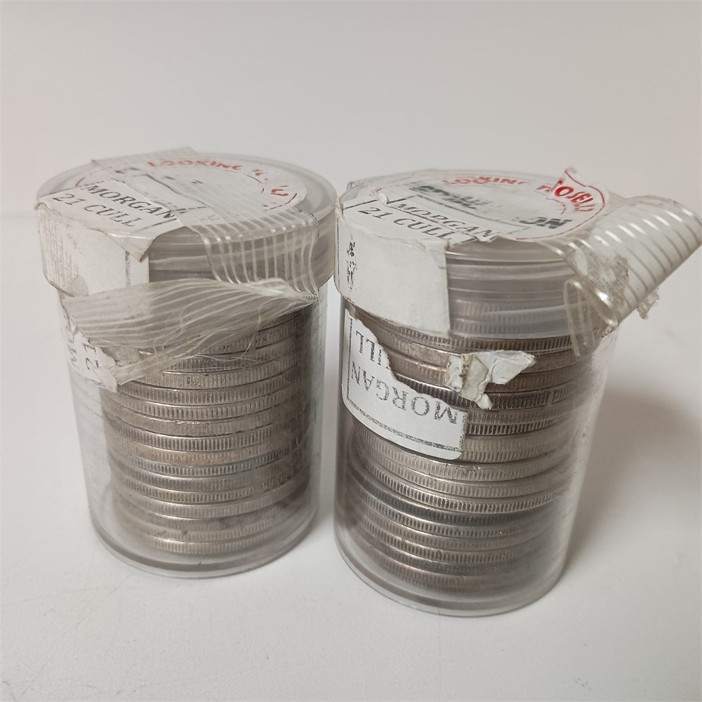 2 Tubes of 20.  We have 6 tubes and we are just passing out 2 random tubes.  Believed to be all 1921 and circulated condition.  The opening bid is the minimum for this late listing ($30 per Morgan).  You either want them or you don't.