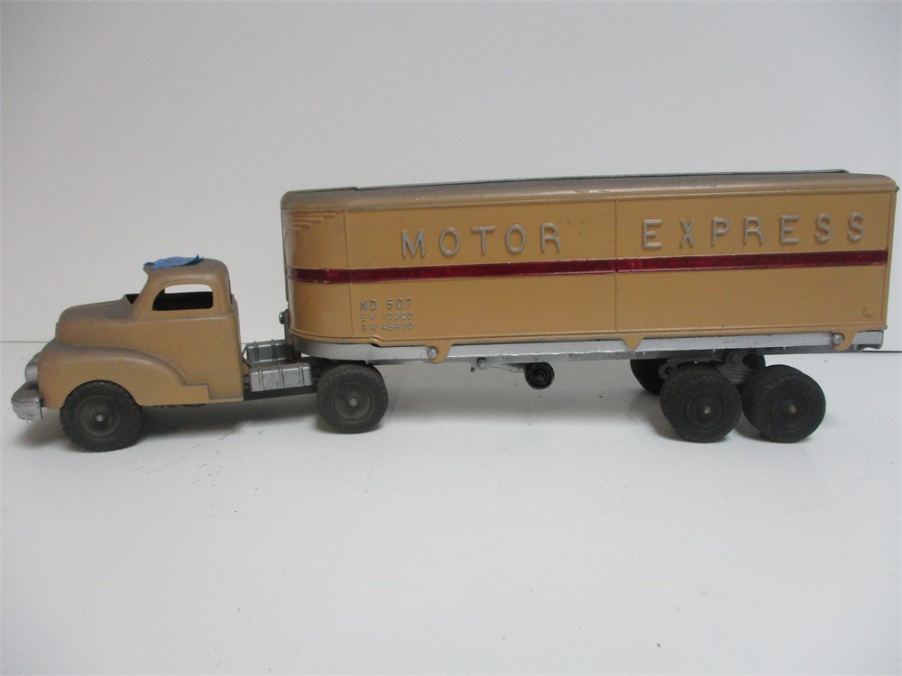 Vintage Hubley Kiddie Toy Motor Express Semi Truck & Trailer