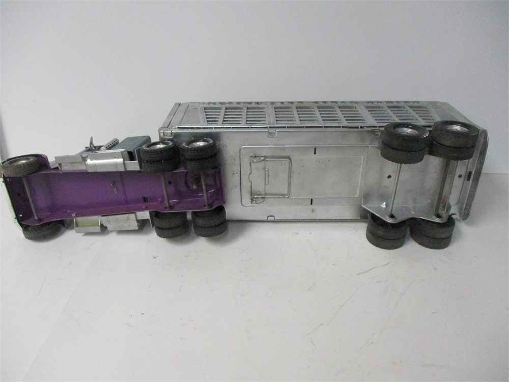 Vintage Nylint Livestock Hauler Semi Truck – Purple Cab – Tin & Steel Toy