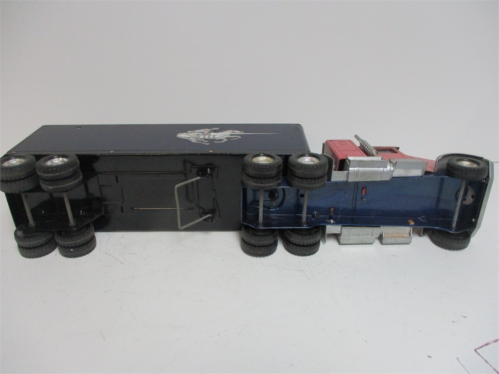 Materials/marks: Pressed steel with plastic details; trailer door marked NYLINT; Made in U.S.A.