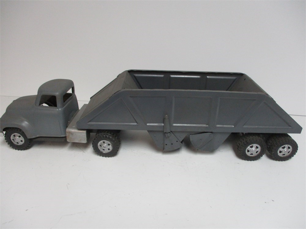 Tonka Vintage Pressed-Steel Semi w/ Bottom-Dump Trailer – Custom Gray